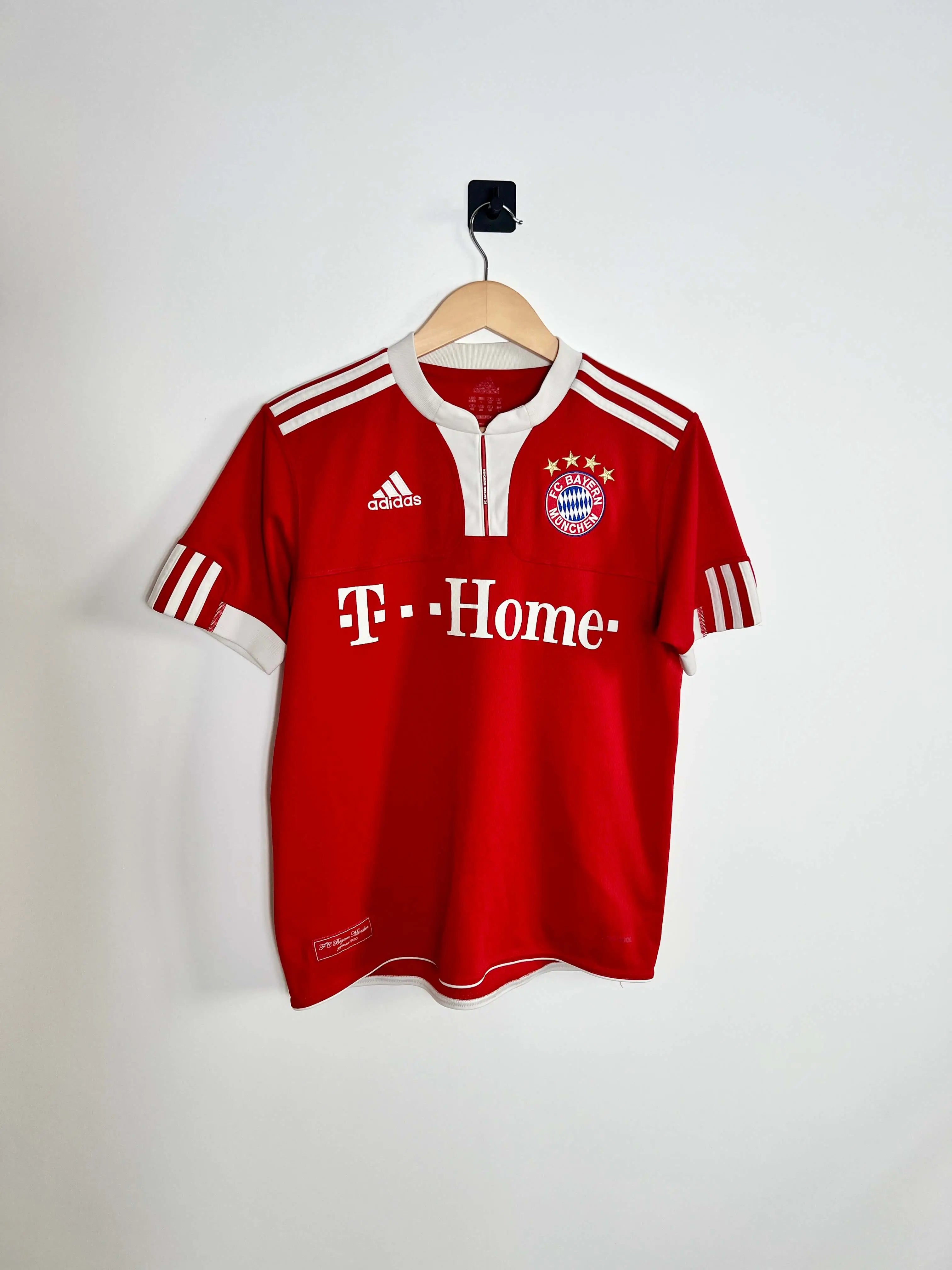 Revivez la passion de l’Allianz Arena avec ce maillot Bayern 2009 rouge domicile signé Adidas, une pièce authentique qui évoque les grandes victoires de l’équipe bavaroise.