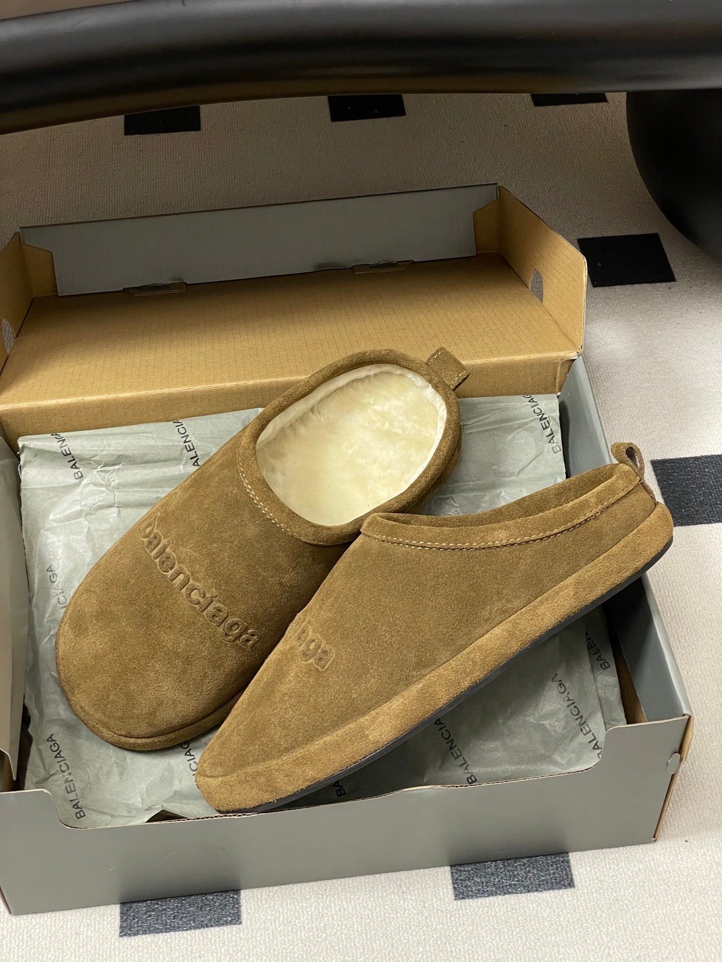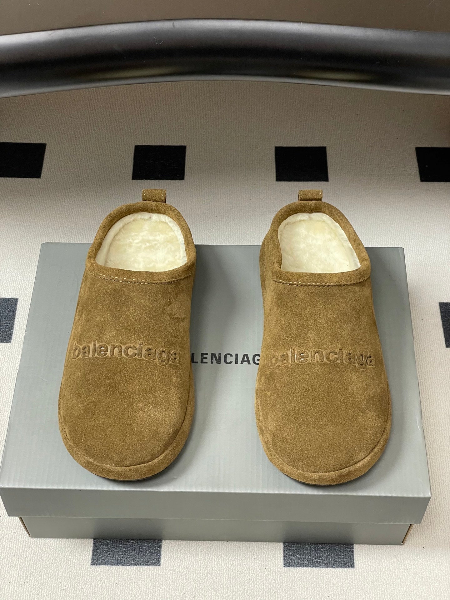 Balenciaga Mule Slip-On Light Brown Suede Wool 534533
