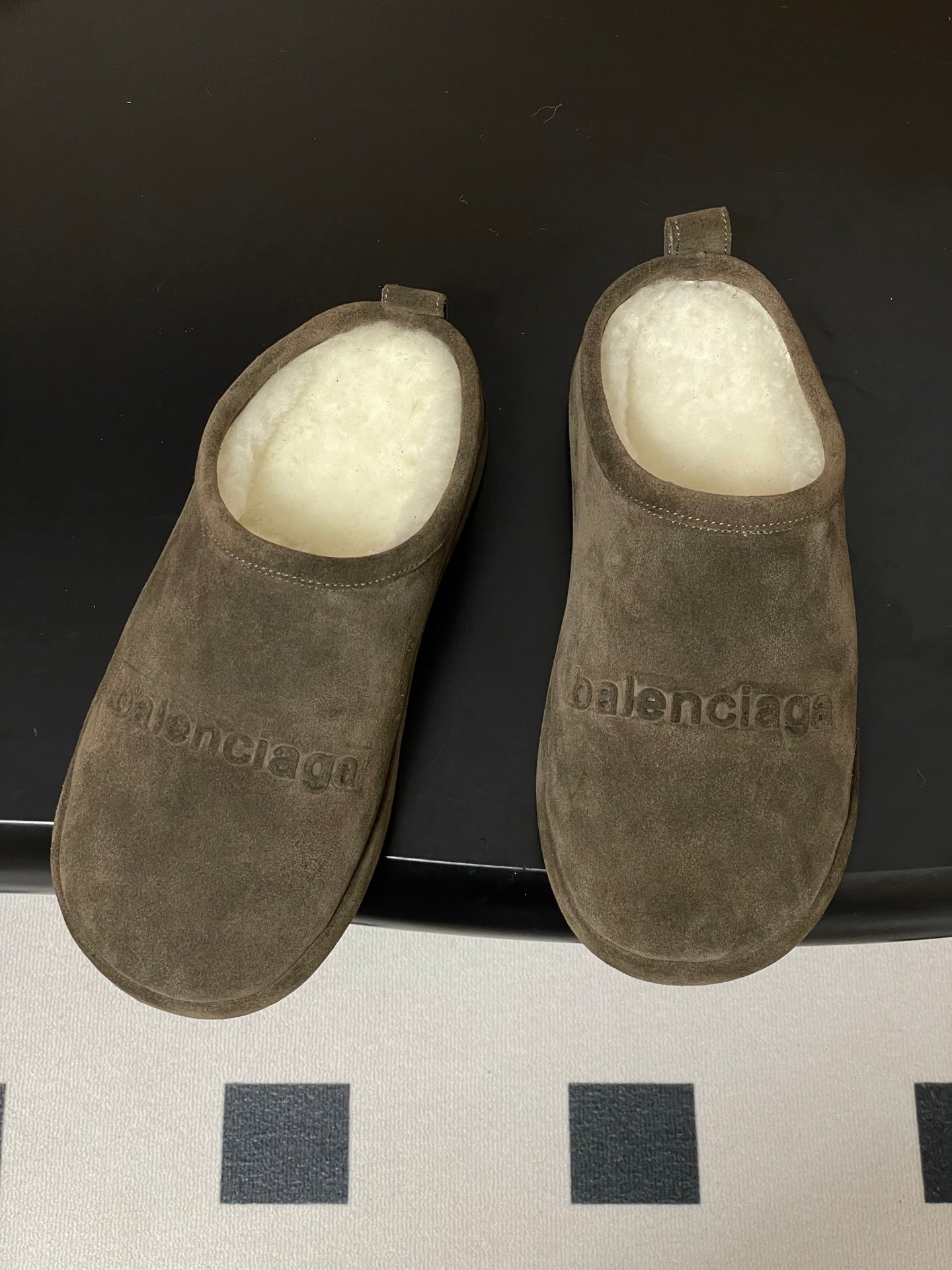 Balenciaga Mule Slip-On Taupe Suede Wool 534532