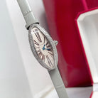 Vintage Baignoire 21mm Silver Diamond Case Grey Leather