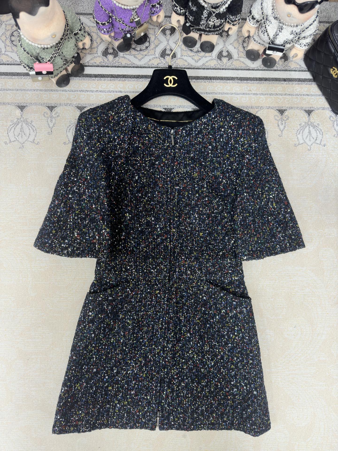 CC Tweed Short Sleeve Dress Multicolor Polyester Polyamide 251864