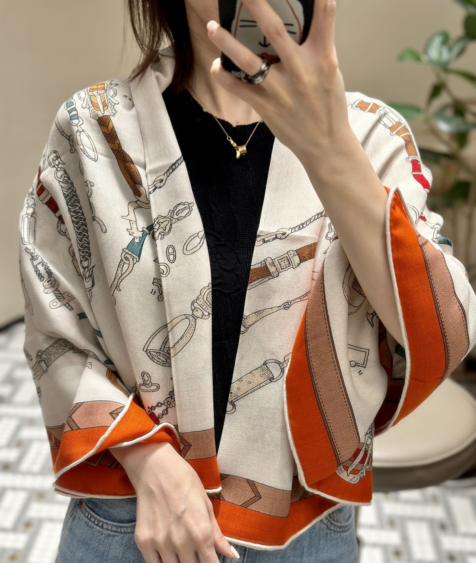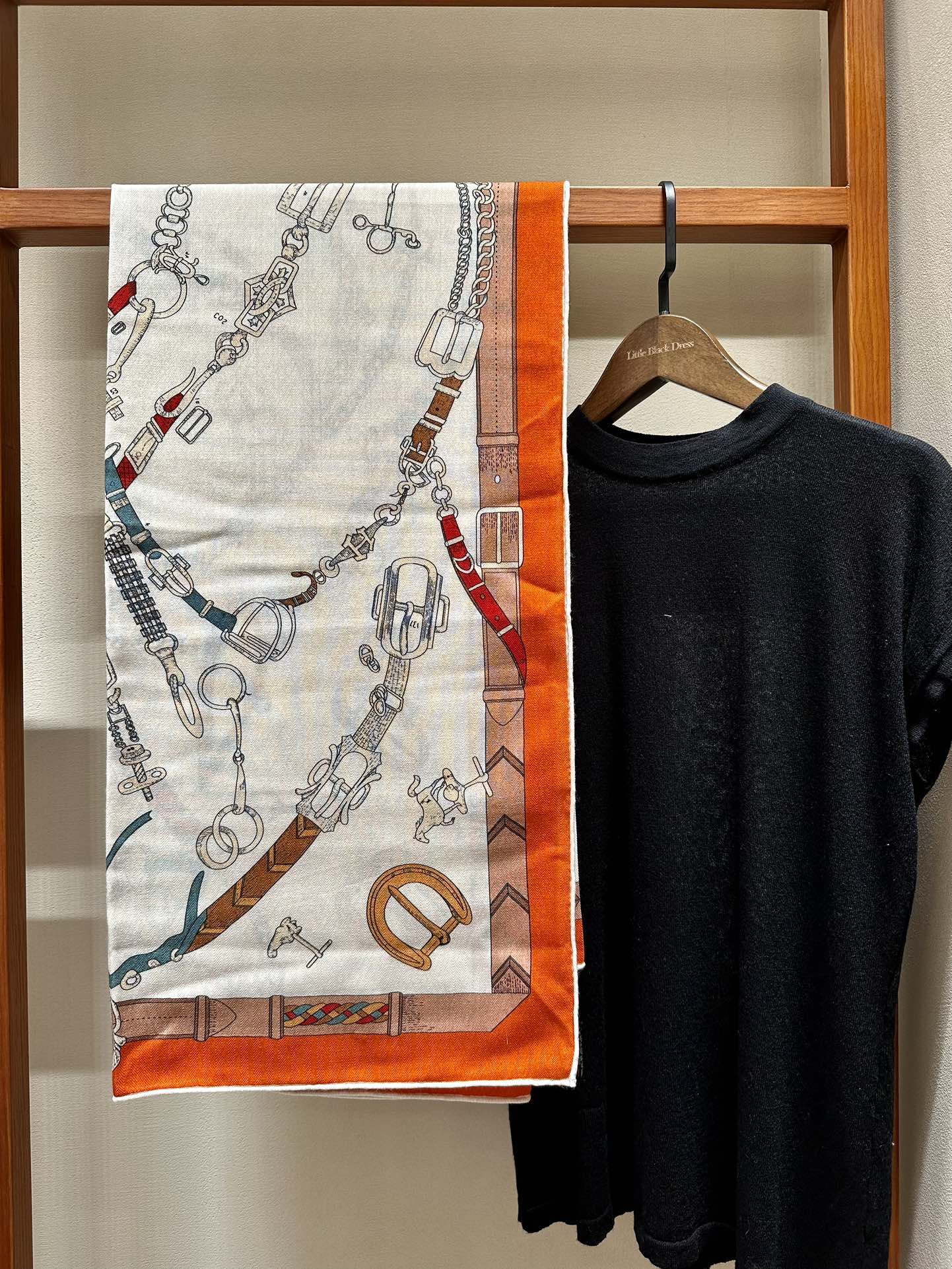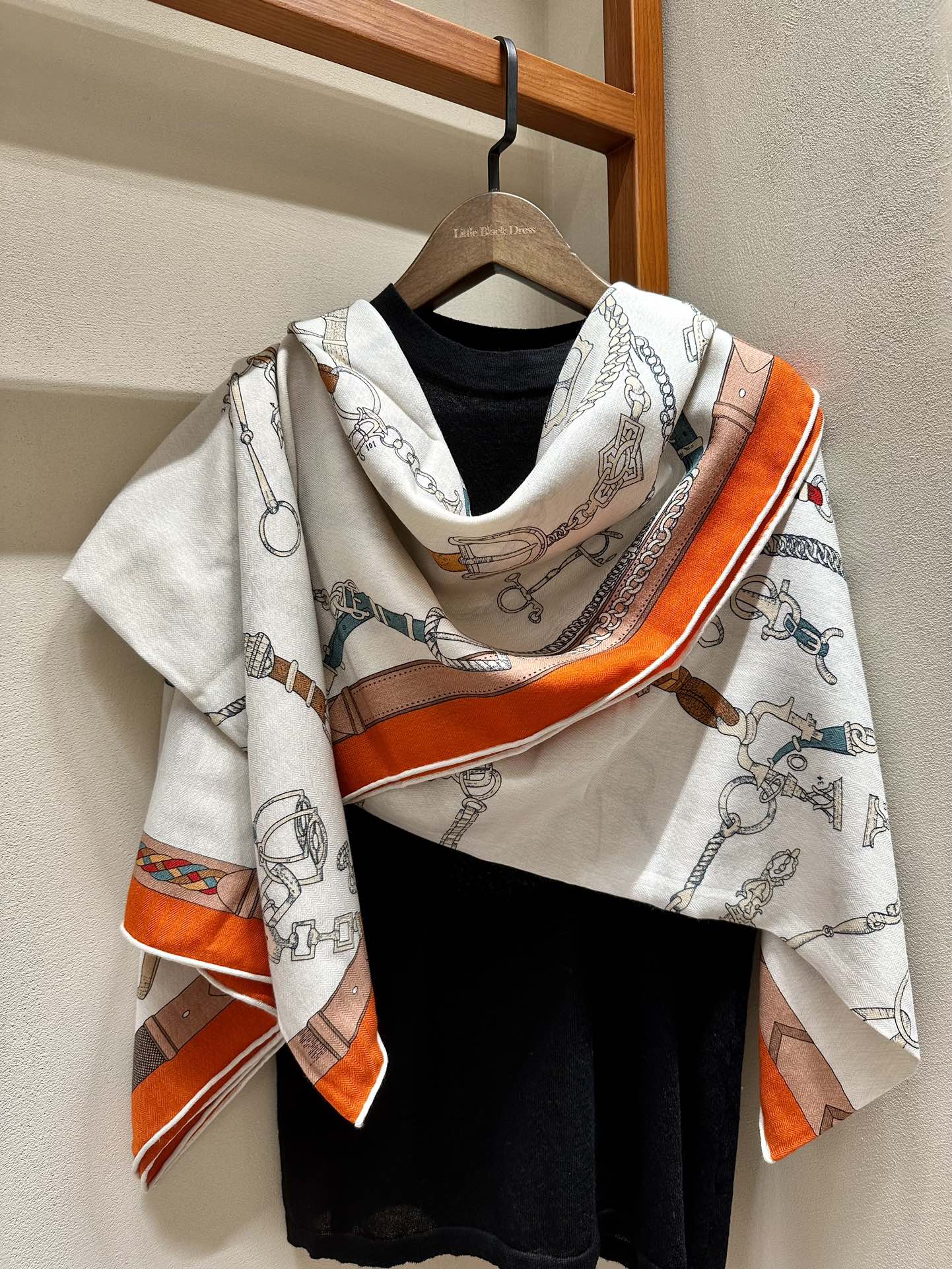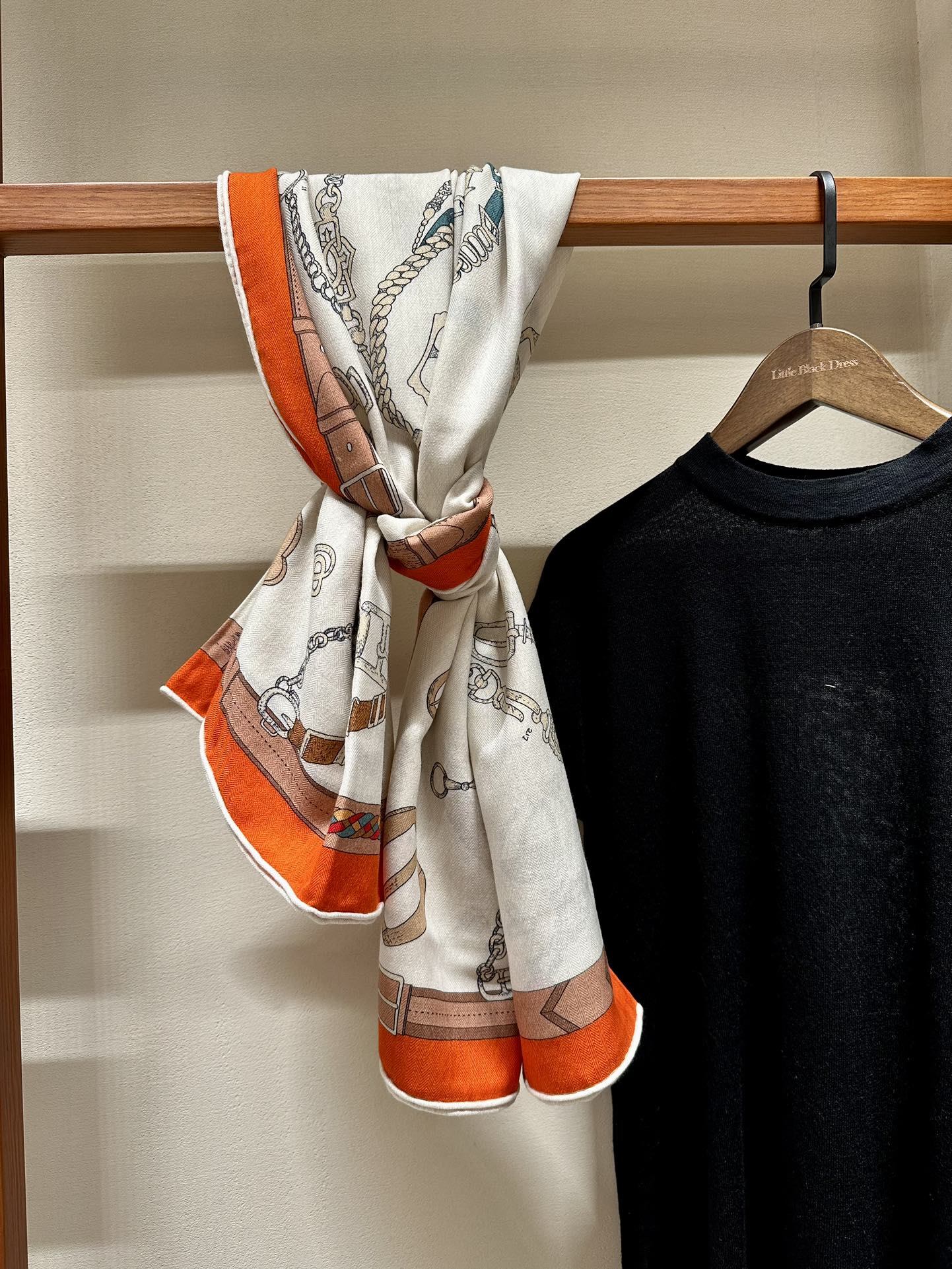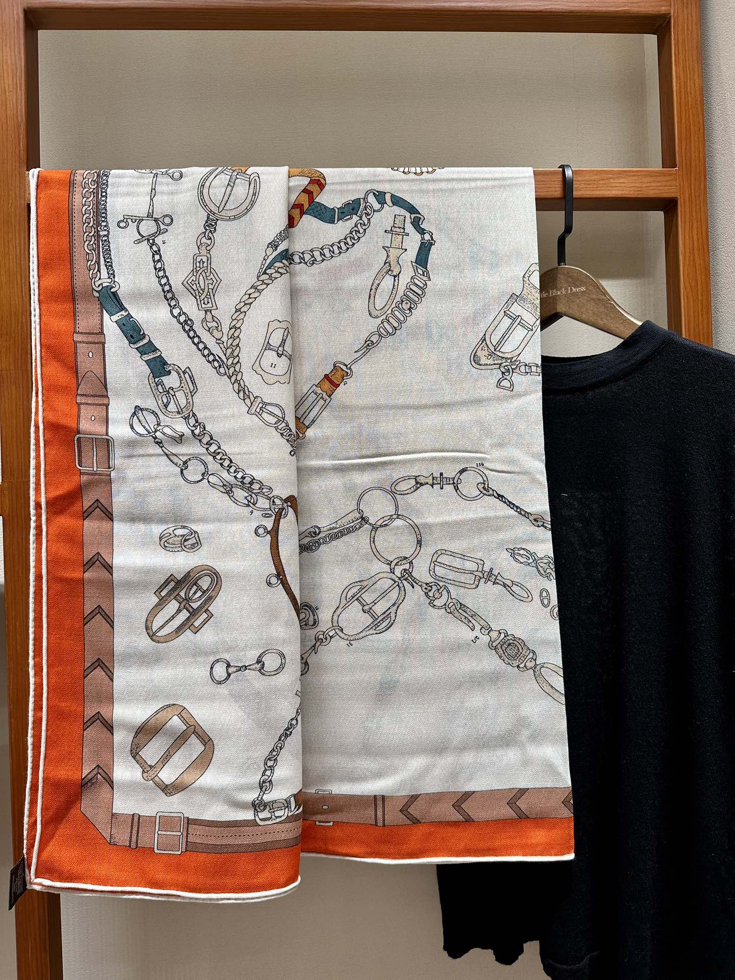 Chevaux Dechaines Shawl 135 CM IN Orange Colorful Cashmere Silk 373685
