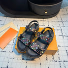 LV LV x TM LV Sunset Flat Comfort Sandal Black with Monogram Multicolore Leather 218916