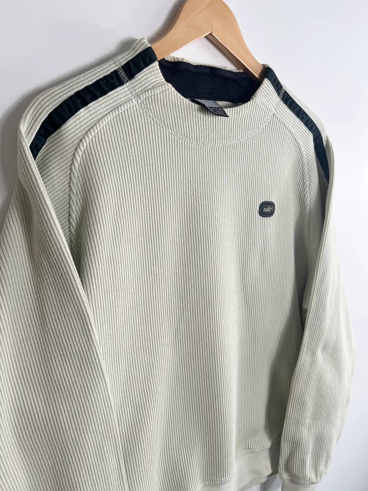 Élégance vintage et vibes streetwear réunies dans ce Pull Nike Vintage 00s au style knit. Couleur beige, taille L, et une broderie minimaliste "Nike" en toutes lettres sur la poitrine : une pièce douce, épurée, mais loin d’être banale.