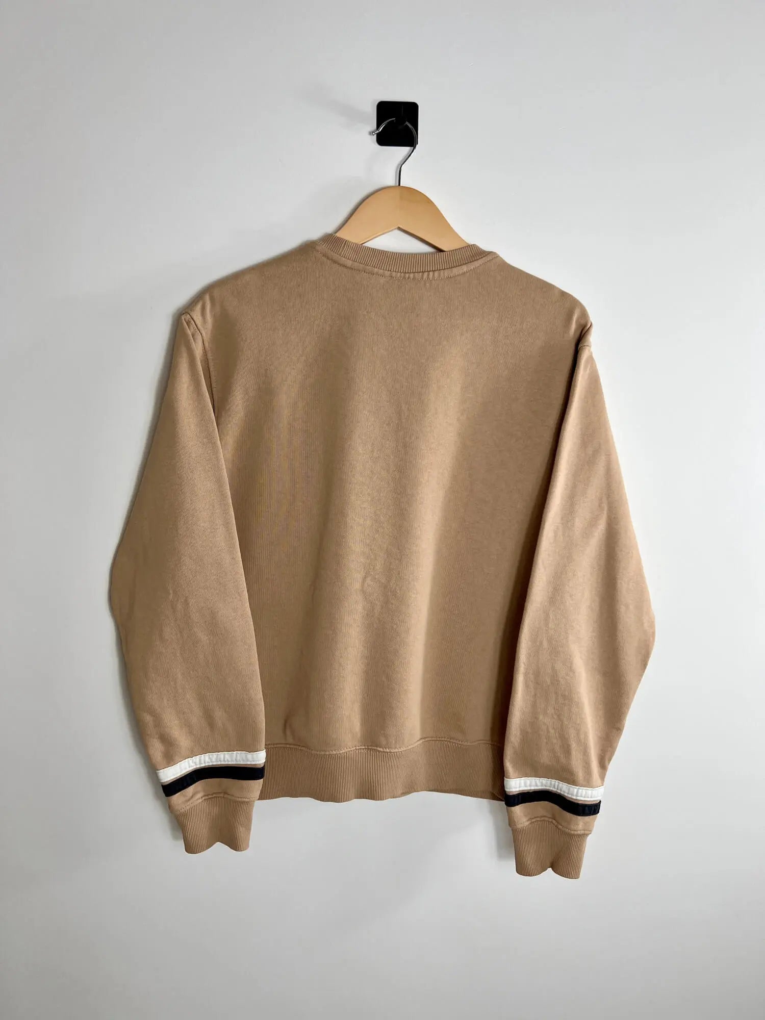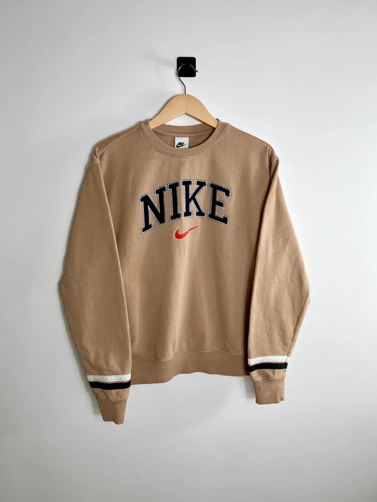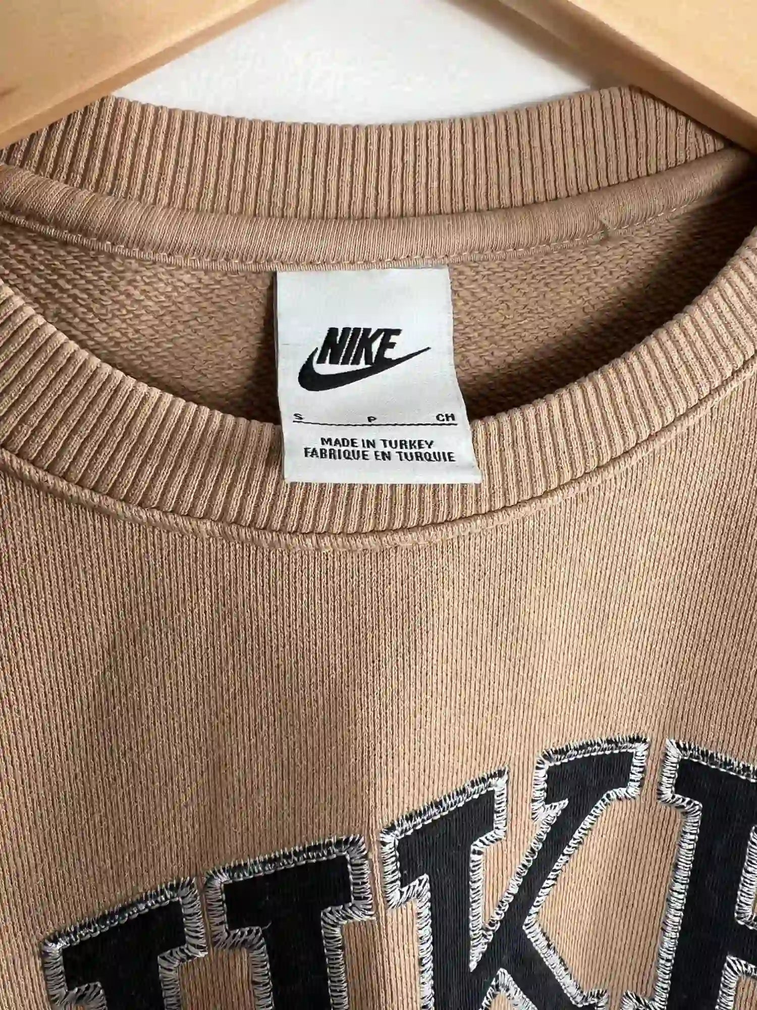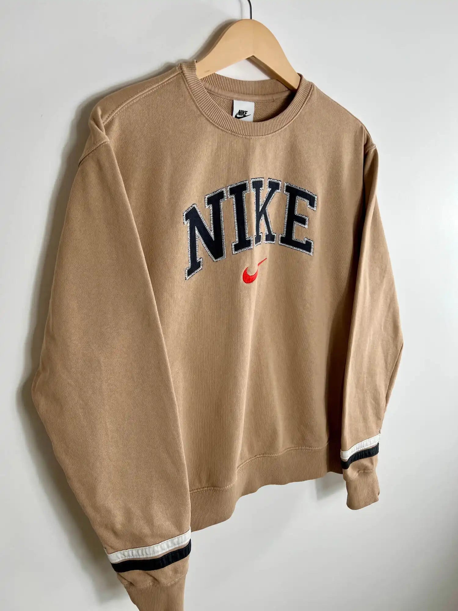 Ce sweat arbore une teinte marron clair ultra-tendance, facile à associer avec n'importe quelle tenue. Le logo Nike brodé en noir et le Swoosh en rouge sur le devant ajoutent une touche sportive et vintage qui rappelle les classiques des années 90 et 2000.