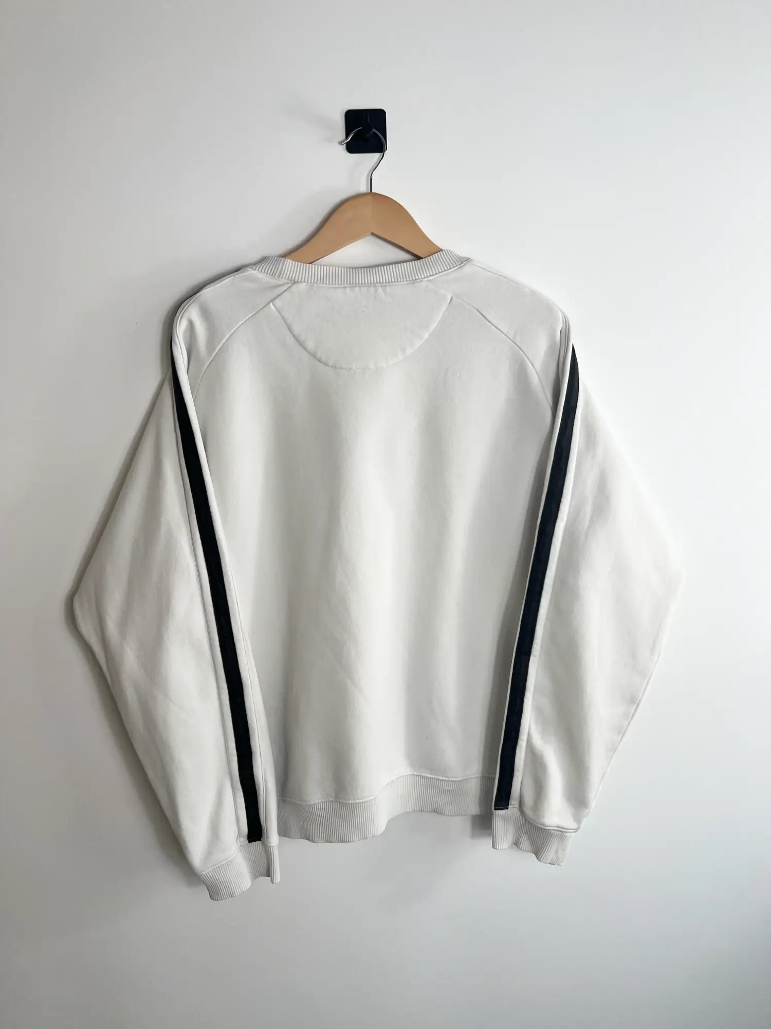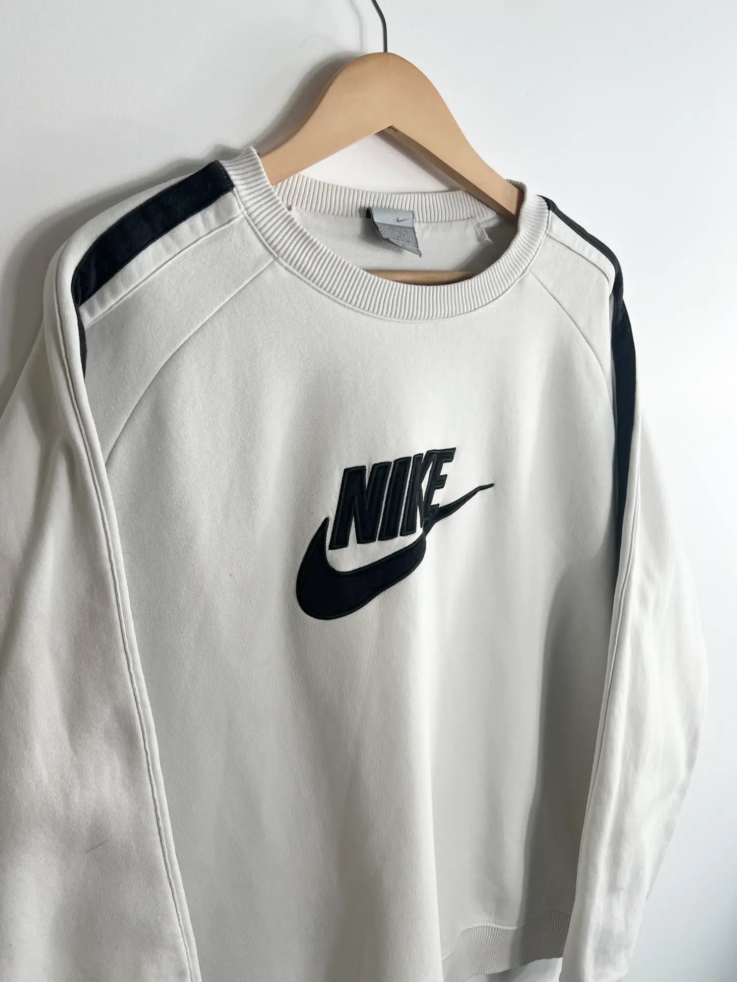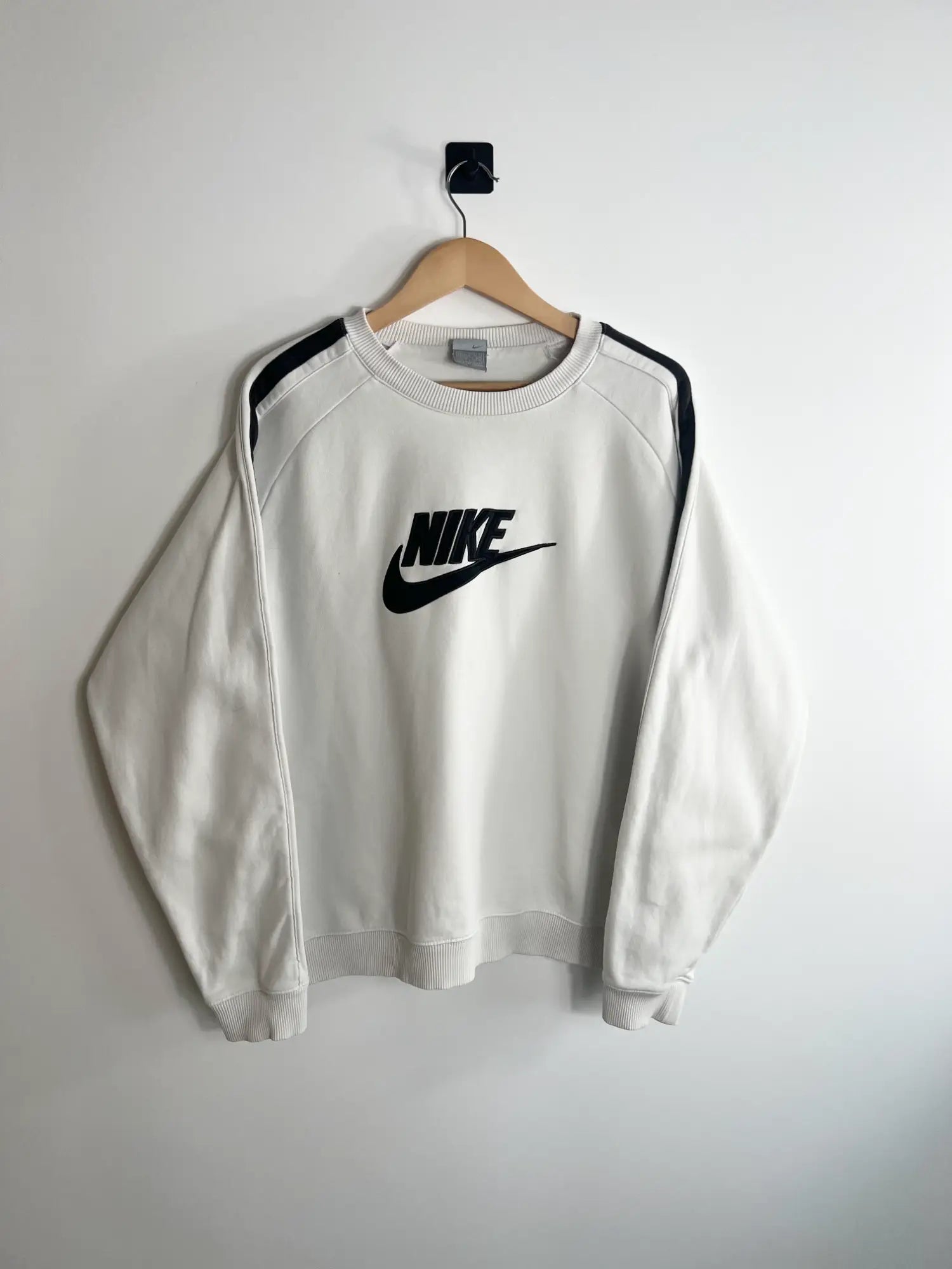 Sobre, efficace et terriblement stylé : ce Sweat Nike Vintage 00s blanc coche toutes les cases pour un look streetwear clean et intemporel. Logo Nike brodé en noir sur le devant, coupe droite et matière confortable — une vraie valeur sûre pour ceux qui aiment les classiques bien faits.