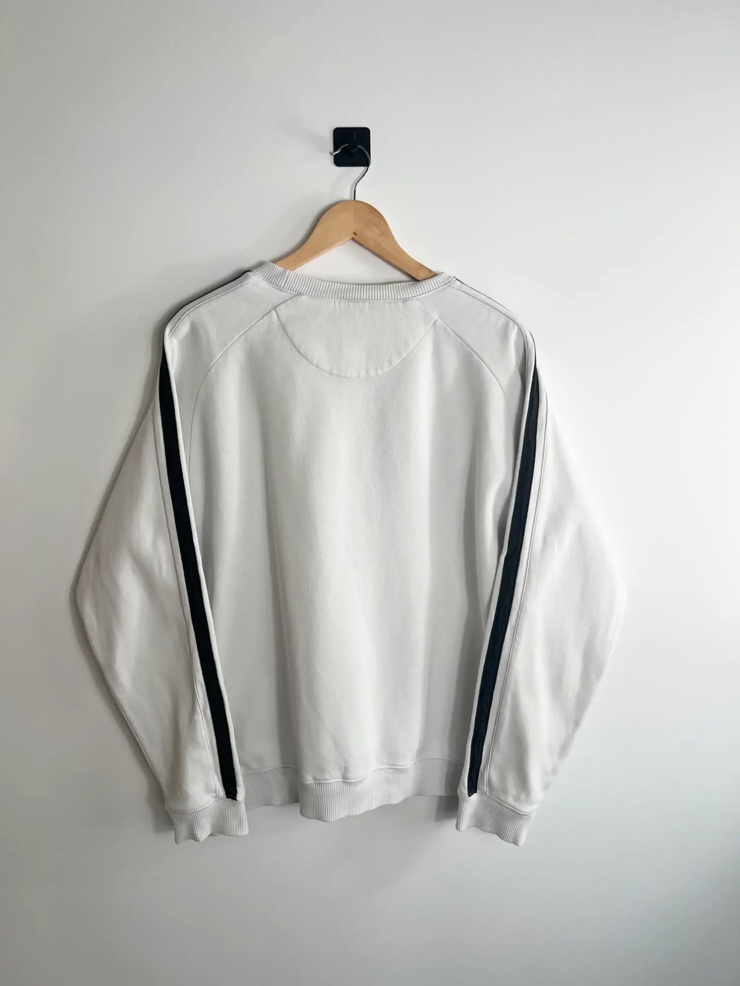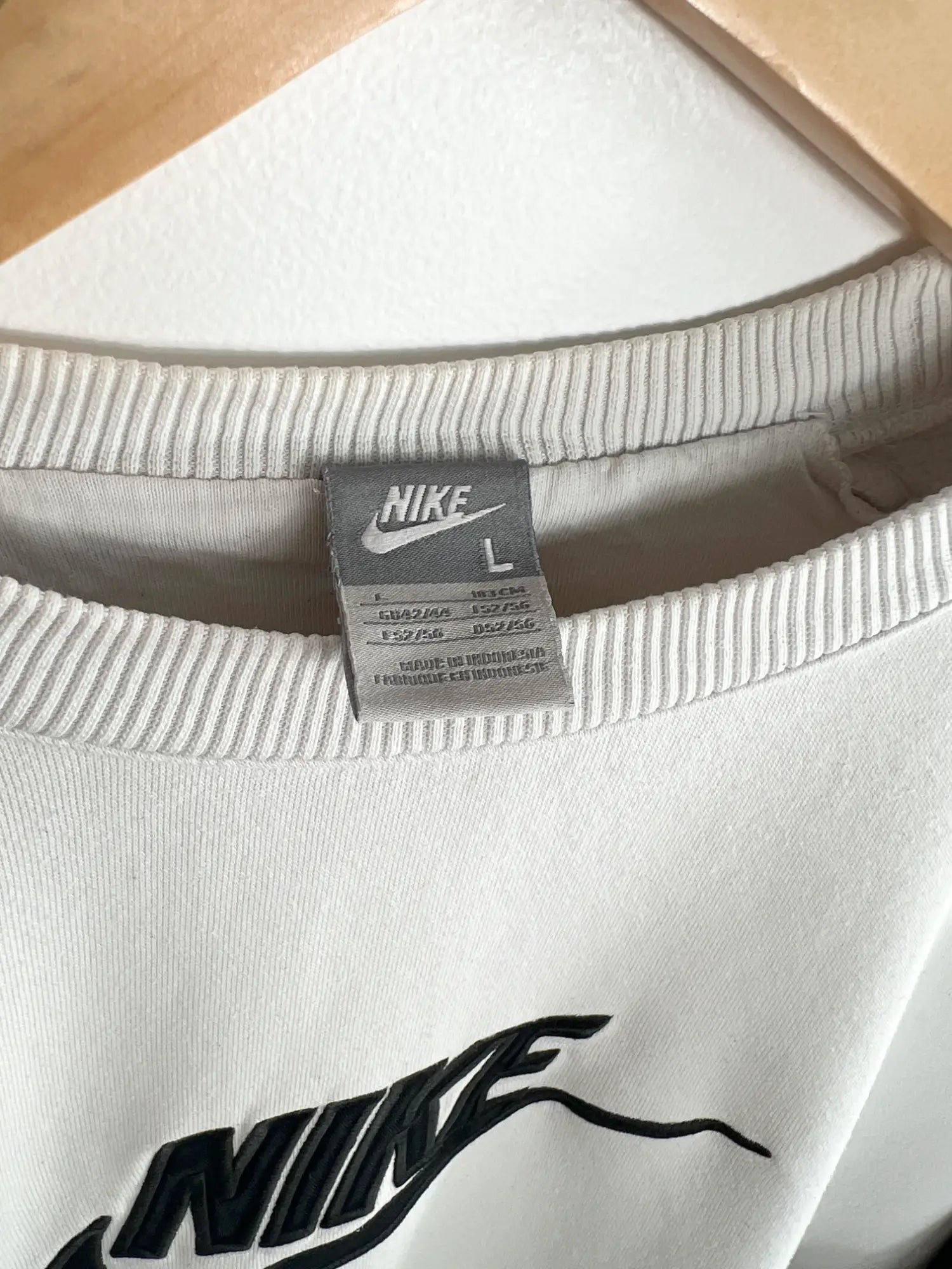Classique, propre, mais toujours avec ce petit truc en plus : ce Sweat Nike Vintage 00s blanc est une vraie masterclass du style simple mais efficace. Taille L, logo Nike brodé en grand en noir sur le devant, coupe décontractée... tout est là pour faire une entrée remarquée dans la cour du vintage.