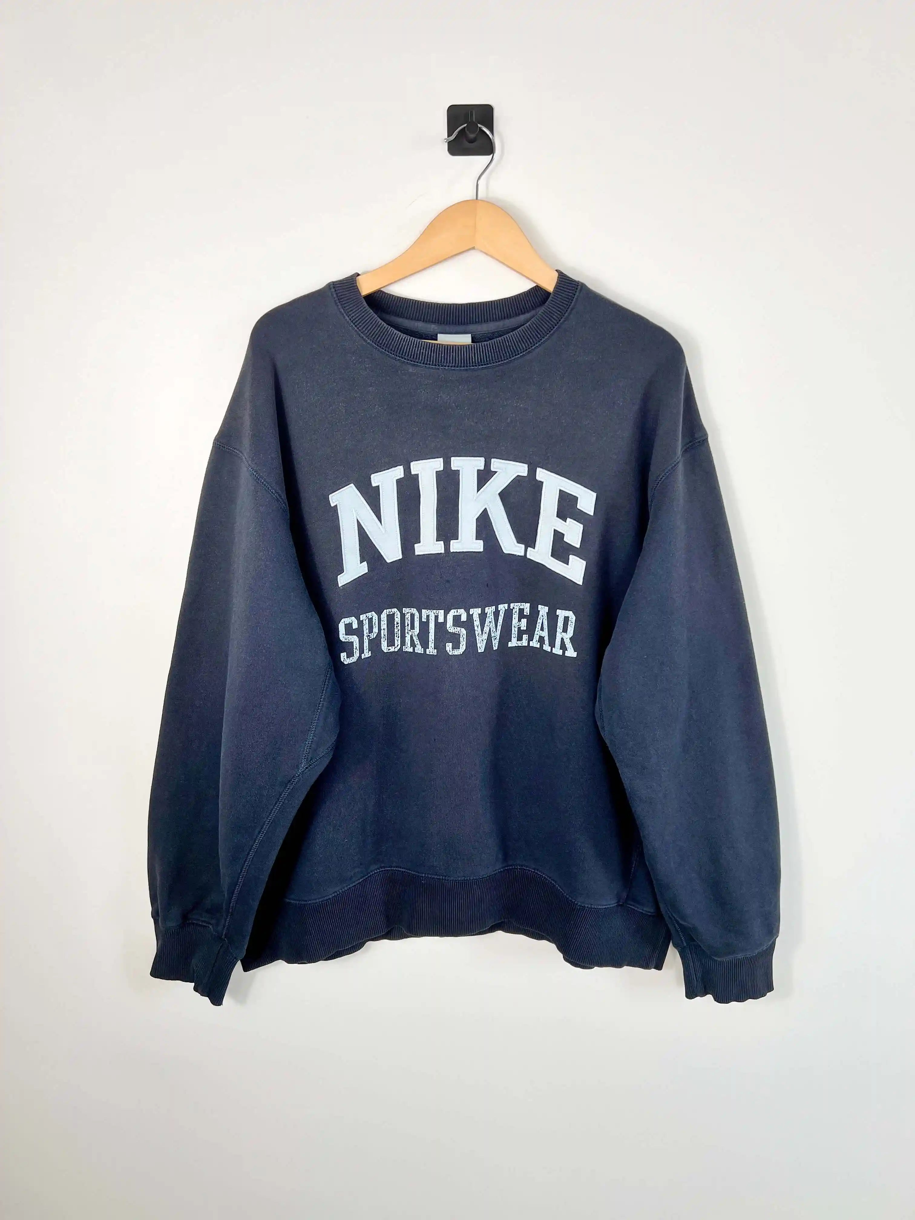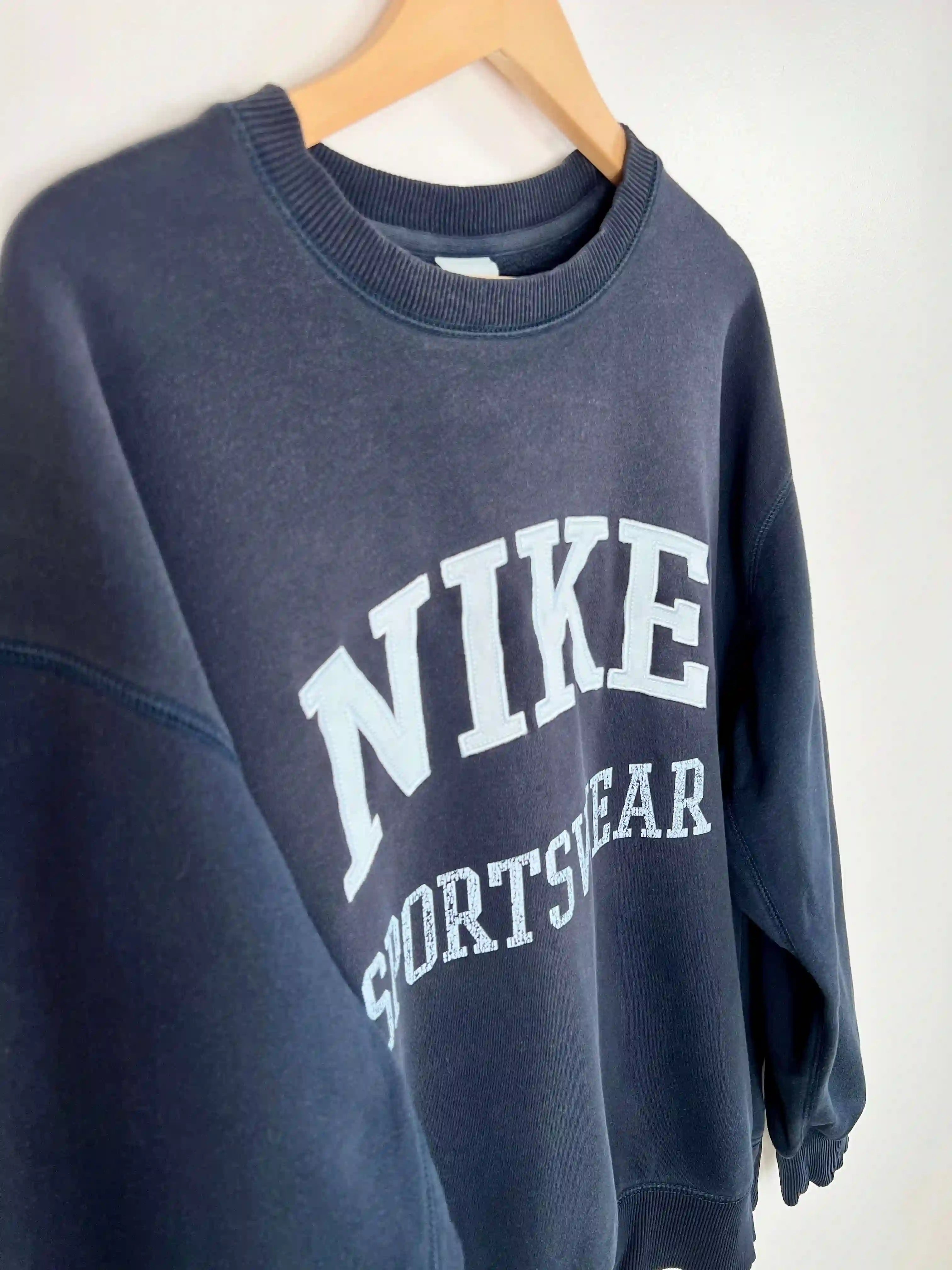 Découvrez l'histoire du streetwear avec notre sweat Nike vintage homme des années 2000 bleu marine, arborant fièrement le logo nike emblématique de la marque brodé sur le devant.