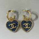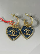 cc heart blue denim light gold hoop earrings