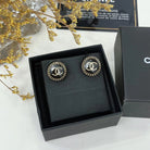 DOUBLE C BLACK ENAMEL STUD EARRINGS
