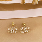 DOUBLE C MOP GOLD STUD EARRINGS