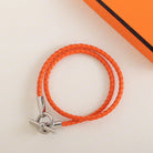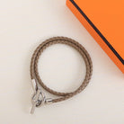 - Braided double tour bracelet in Swift calfskin with palladium-plated Glenan closure