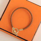 - Braided double tour bracelet in Swift calfskin with palladium-plated Glenan closure