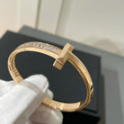WIDE HINGED BANGLE PINK GOLD WITH BAGUETTE DIAMONDS