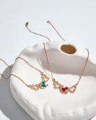 WULU 3 MOTIF DIAMOND PINK GOLD NECKLACE
