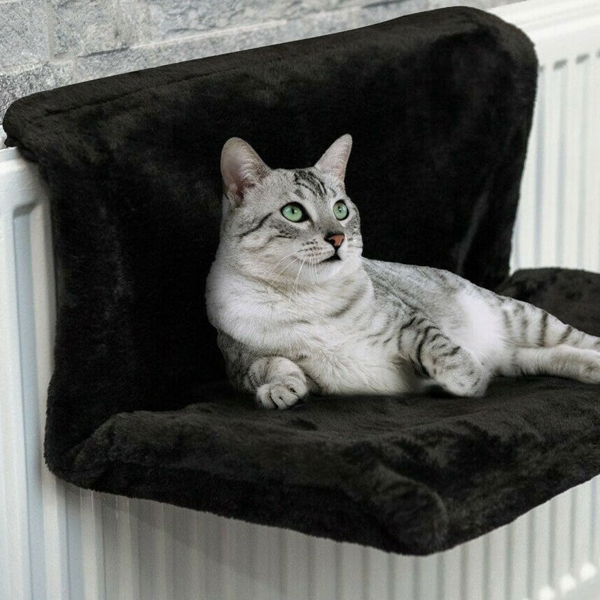 Ce couchage suspendu offrira un coin repos à votre félin, en hauteur et au chaud près d'un radiateur.