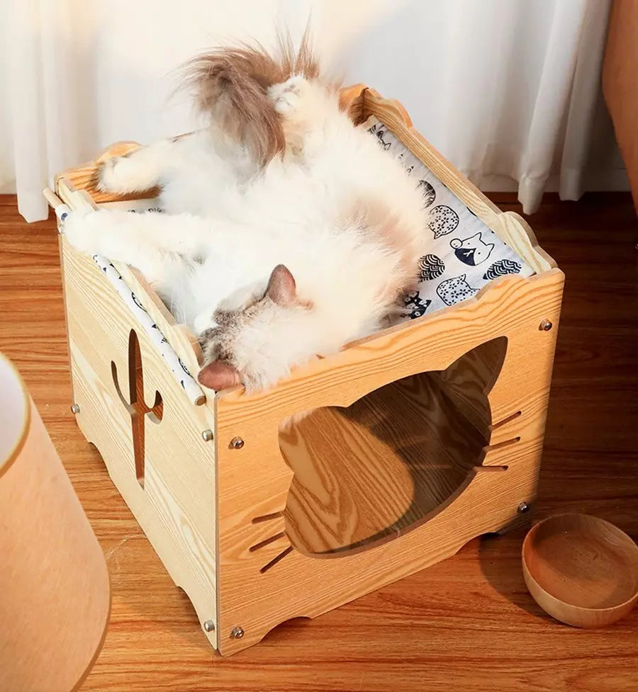 Cette maisonnette en bois va faire le bonheur de votre chat !