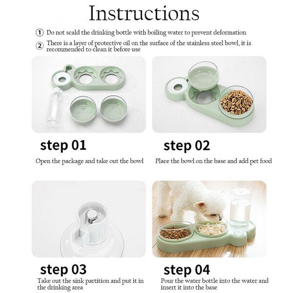 TRIO - Gamelle double surélevée avec distributeur d’eau automatique