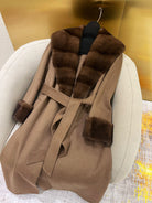 LP 25 Deep V-neck Long Coat Brown Cashmere Fur 303964
