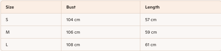 - For more information, please see the size guide below