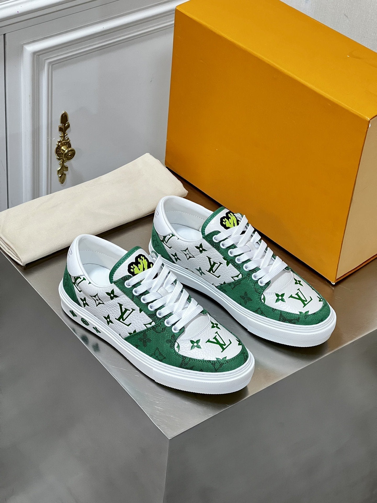 LV MONOGRAM GREEN AND WHITE SNEAKERS