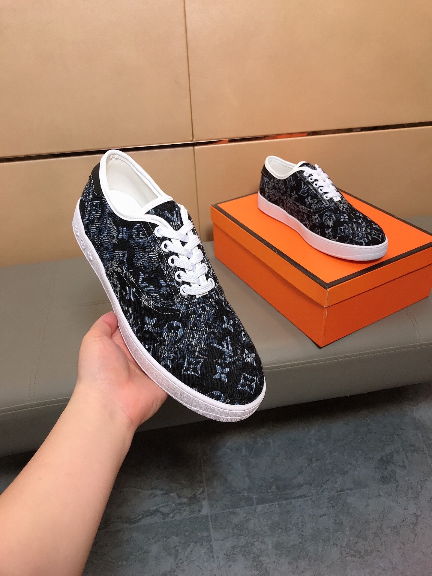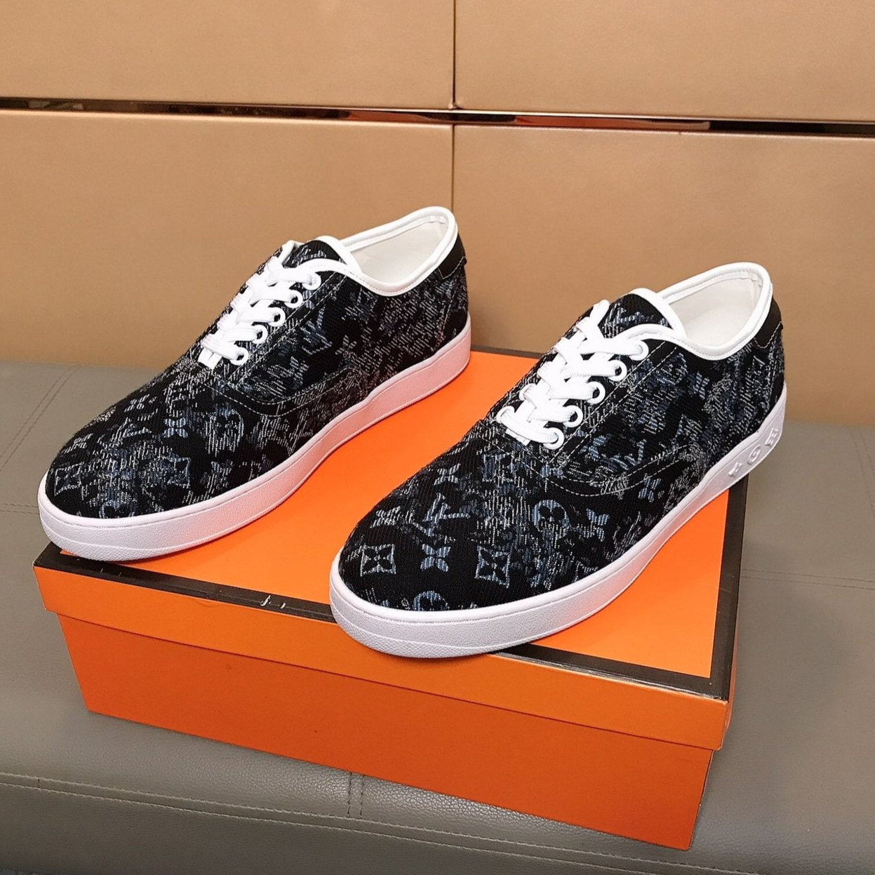 LV TRAINER BLACK MIX BLUE MONOGRAM JACQUARD