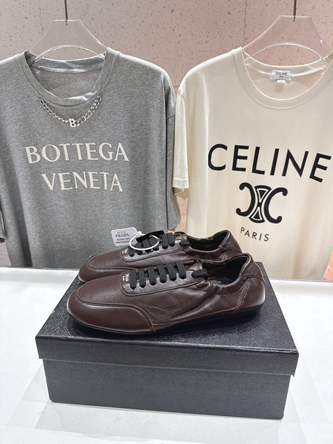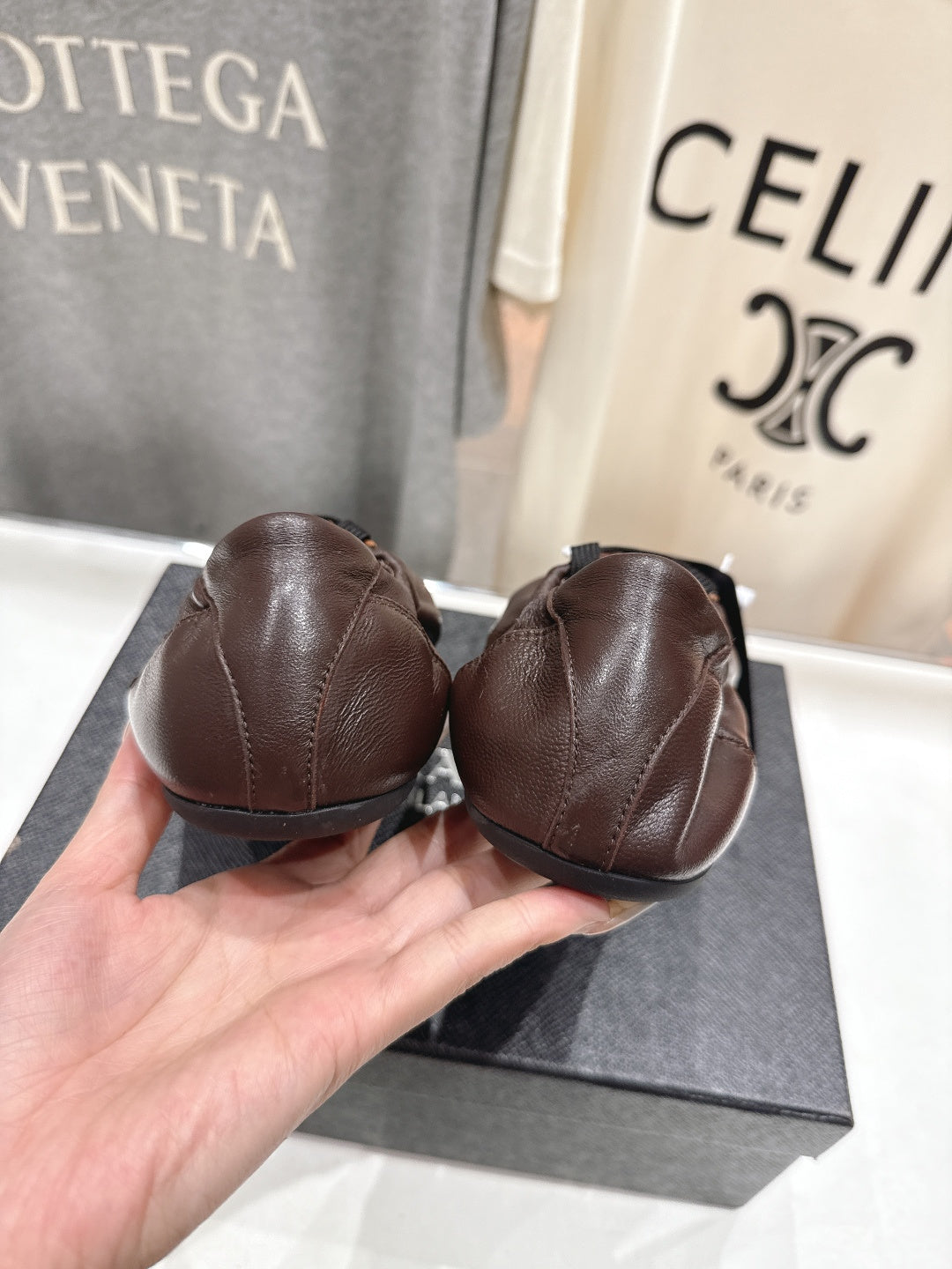 Prada 25s ballet flats dark brown sheepskin 535498