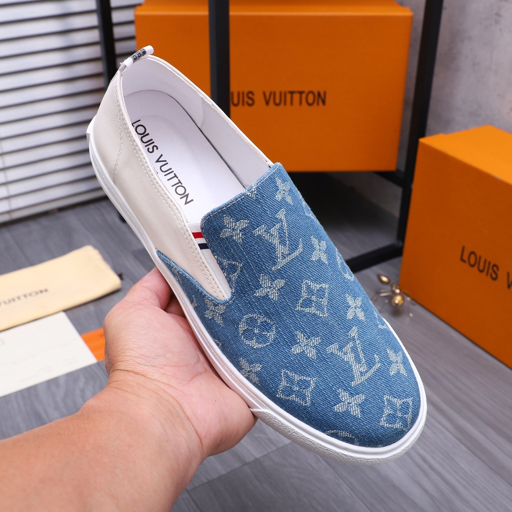 LV LOAFERS IN LIGHT BLUE DENIM AND WHITE CALFSKIN