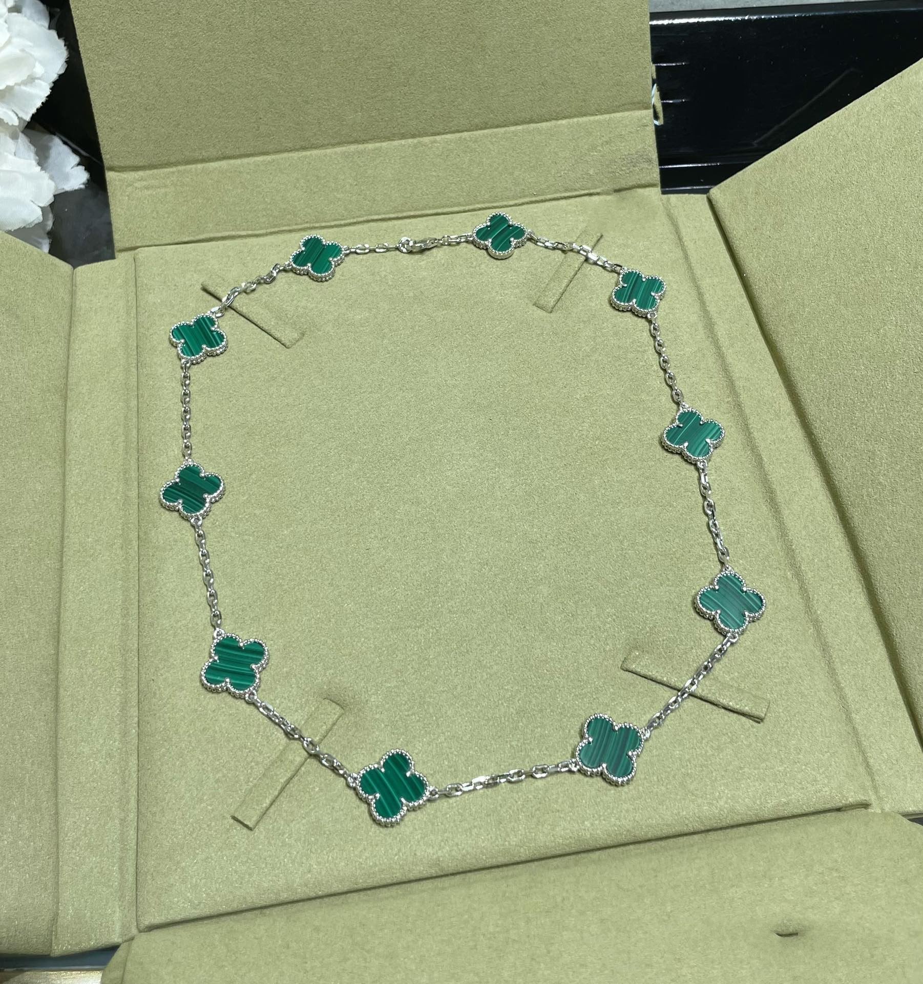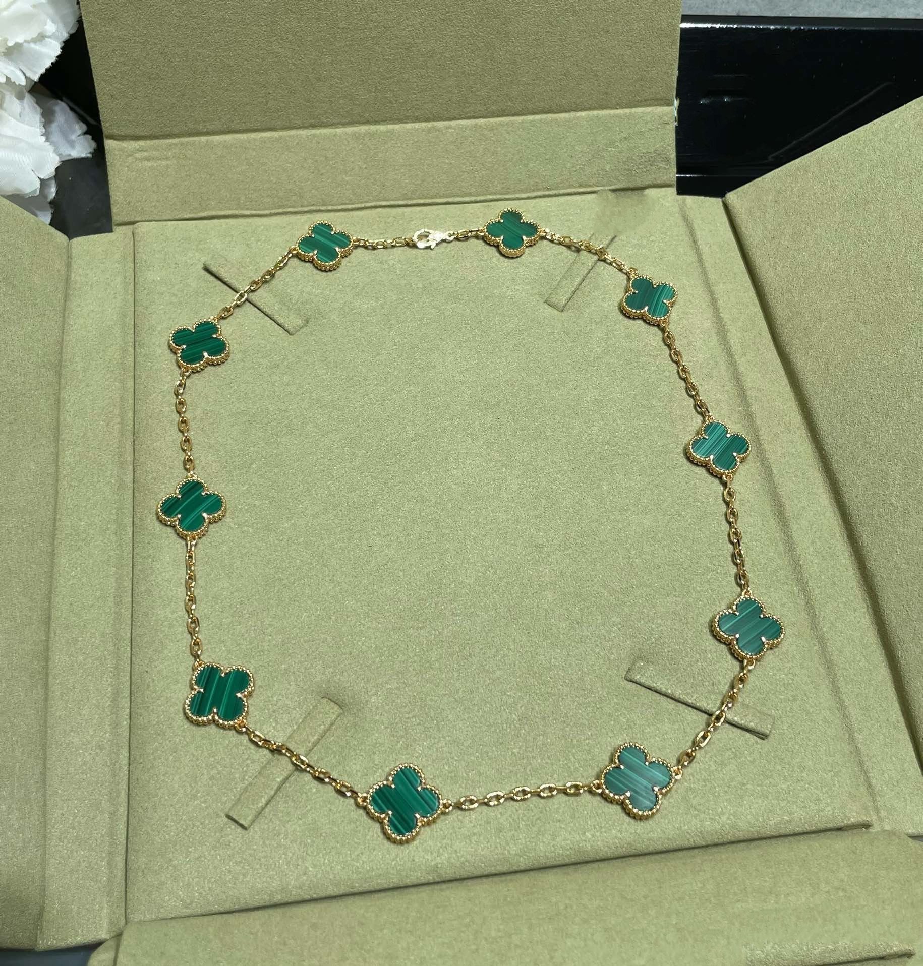 CLOVER 10 MOTIF MALACHITE NECKLACE