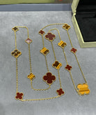 CLOVER 16 MOTIF CARNELIAN TIGER EYE PINK GOLD NECKLACE
