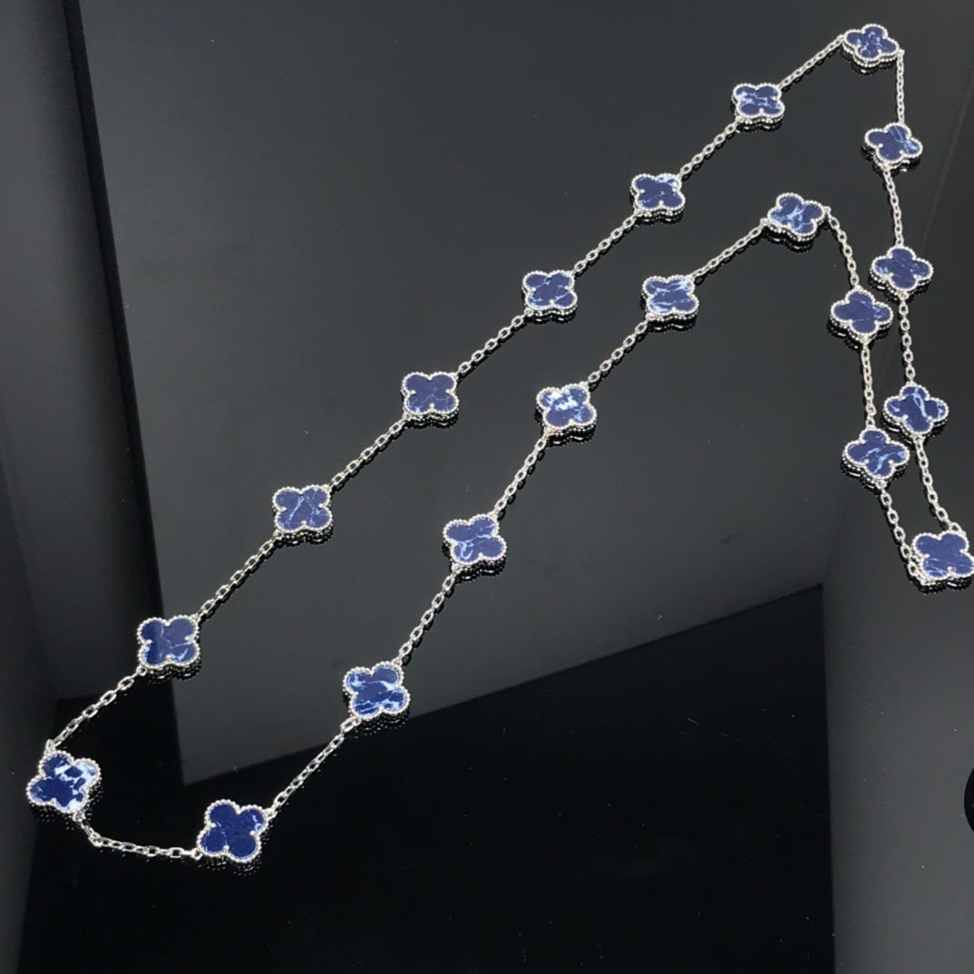 CLOVER 20 MOTIF SILVER PIETERSITE NECKLACE