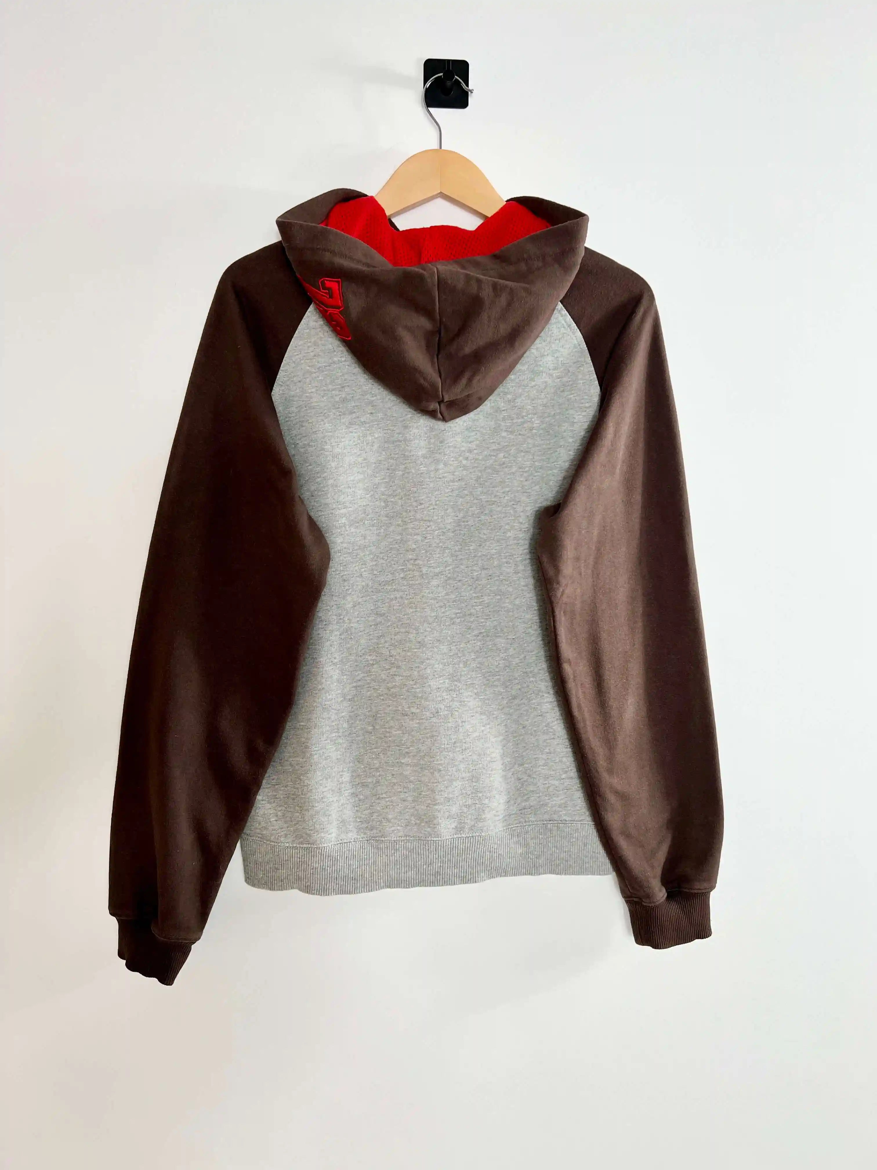 This vintage Nike hoodie from the 2000s is the perfect embodiment of retro style revisited. With its subtly distressed grey and contrasting brown sleeves, it offers a unique look, full of character. This sweatshirt doesn't just give you a look, it tells the story of a time when authenticity and comfort dominated the streetwear scene.