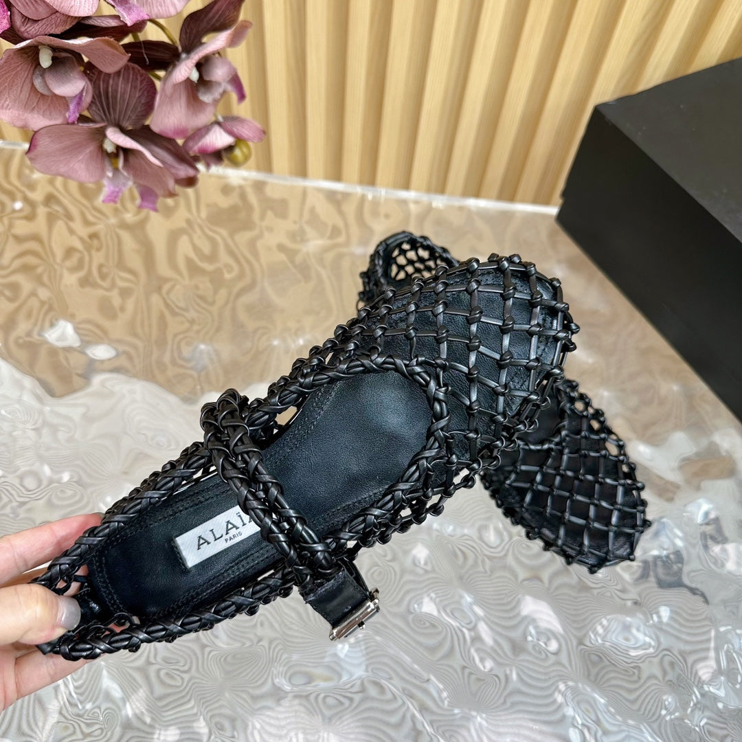 Alaia Ballet Flats In Black Woven Cowhide 102286