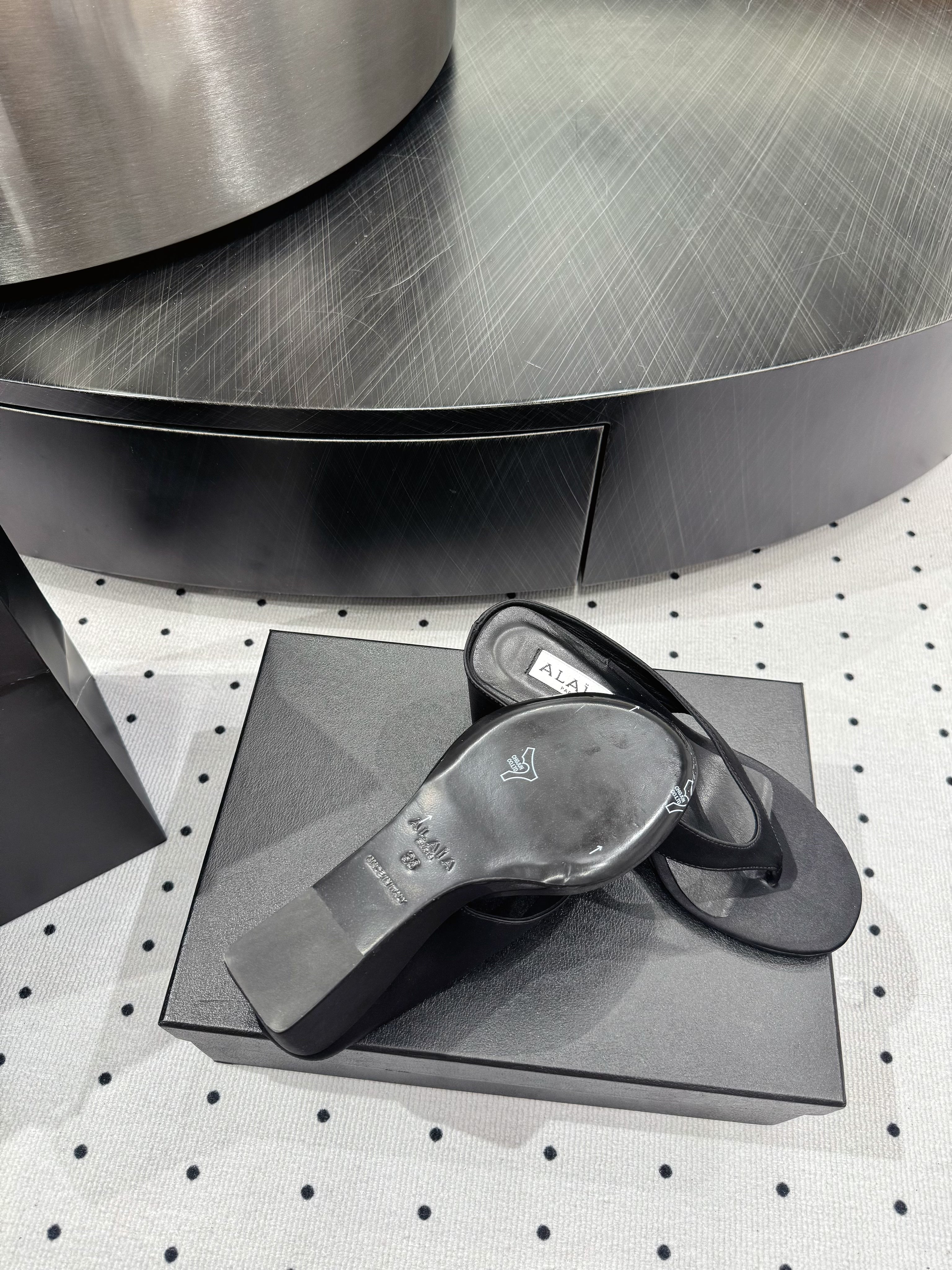 Alaia 25 Cube Thong Mules Black Sheepskin 296090