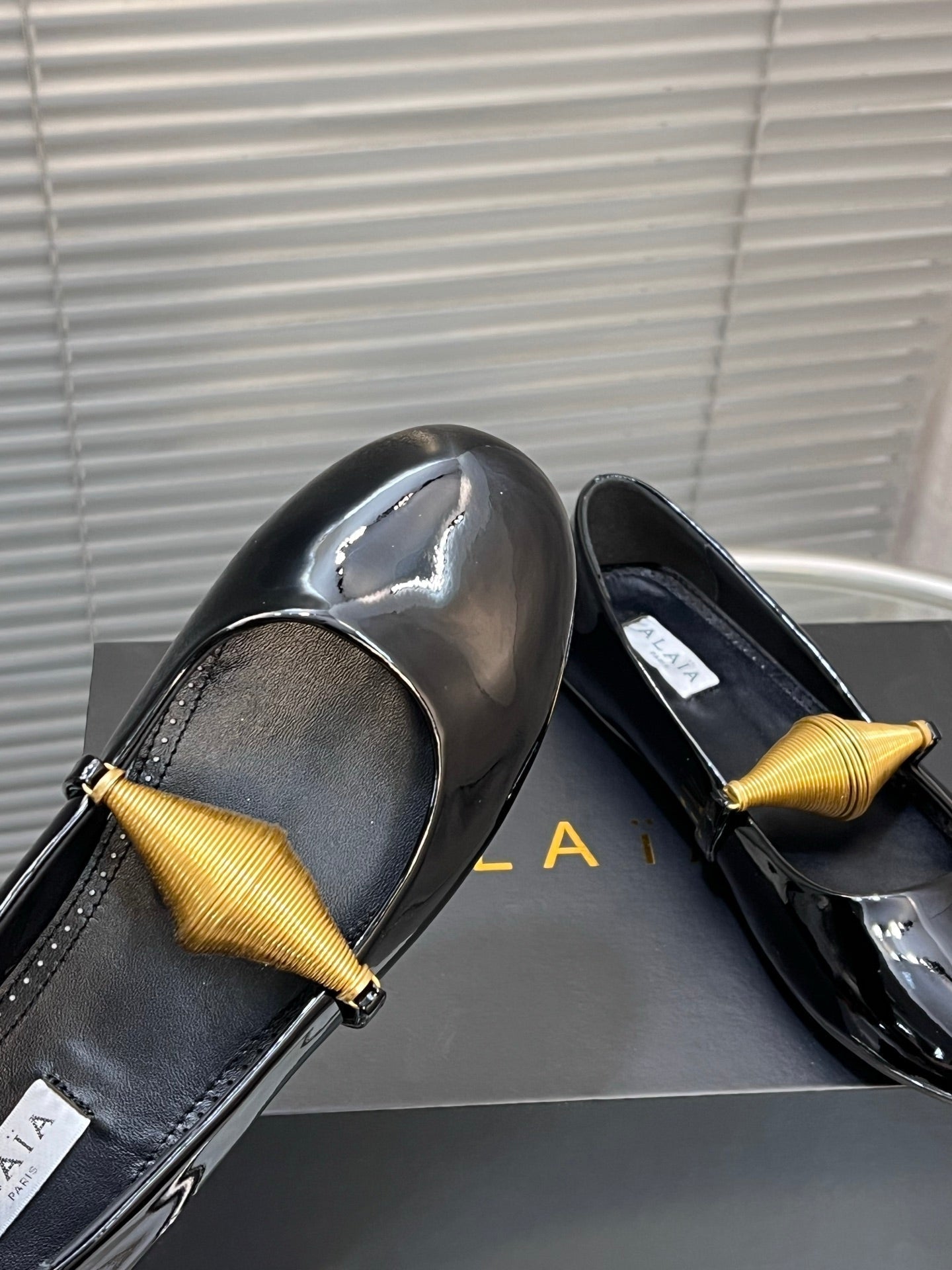 Alaia 25 Jewel Patent Leather Ballet Flats Black Lambskin 300012