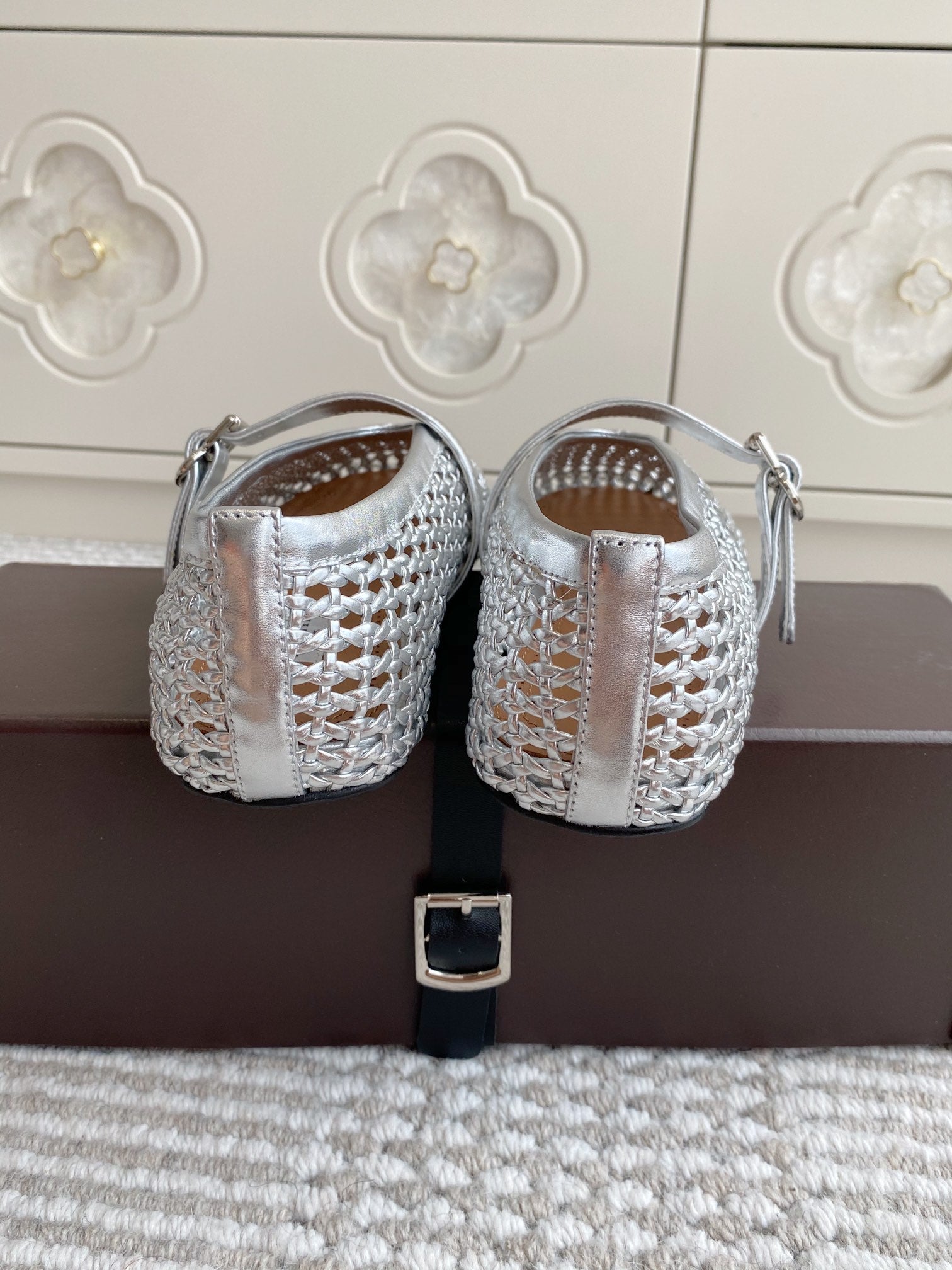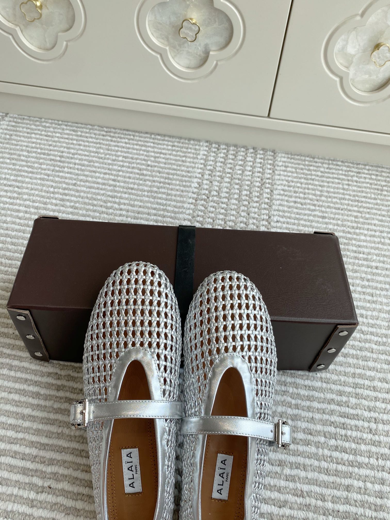 Alaia Women's Ballet Flat Silver Lambskin 291051