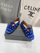 Alaila Ballet Flats In Dark Blue Velvet With Rhinestones 971996