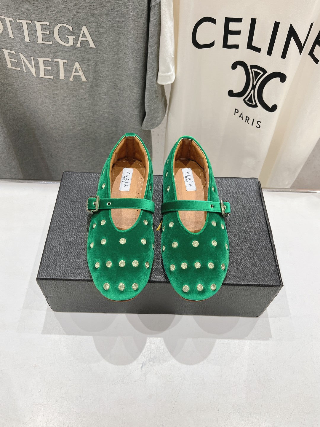 Alaila Ballet Flats In Green Velvet With Rhinestones 972004