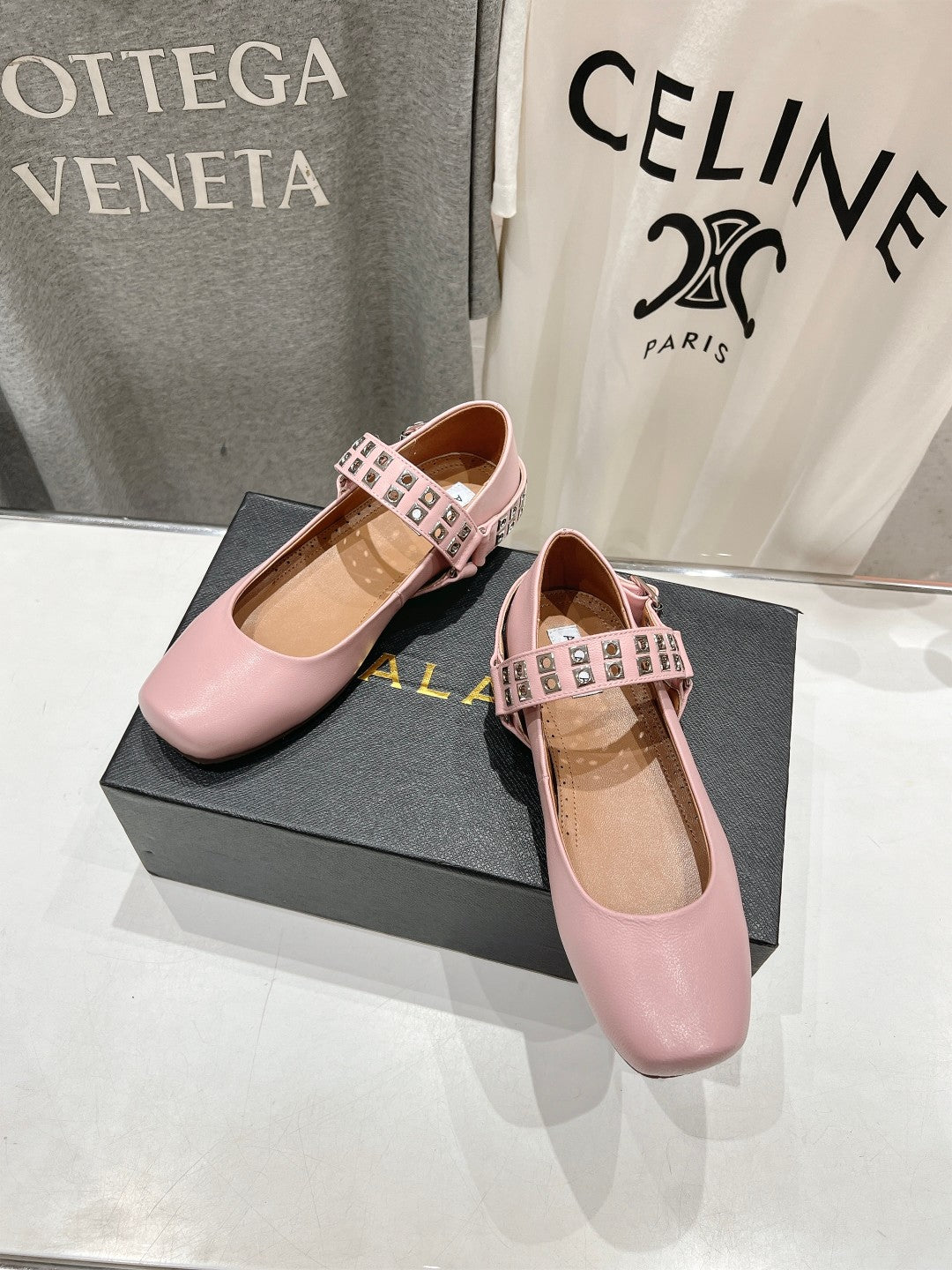 Alaila Biker Ballet Flats In Light Pink Cowhide 911432