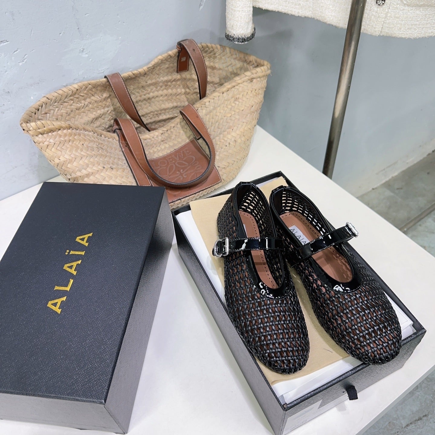 Alaia 25 Braided Ballet Flats Black Cowhide 303677
