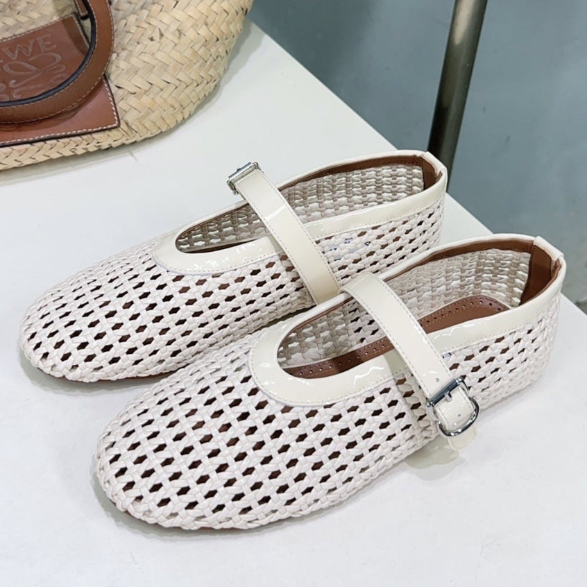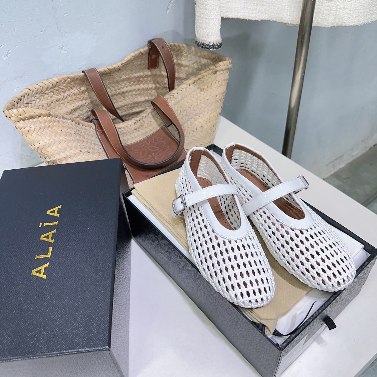 Alaia 25 Braided Ballet Flats White Cowhide 303676
