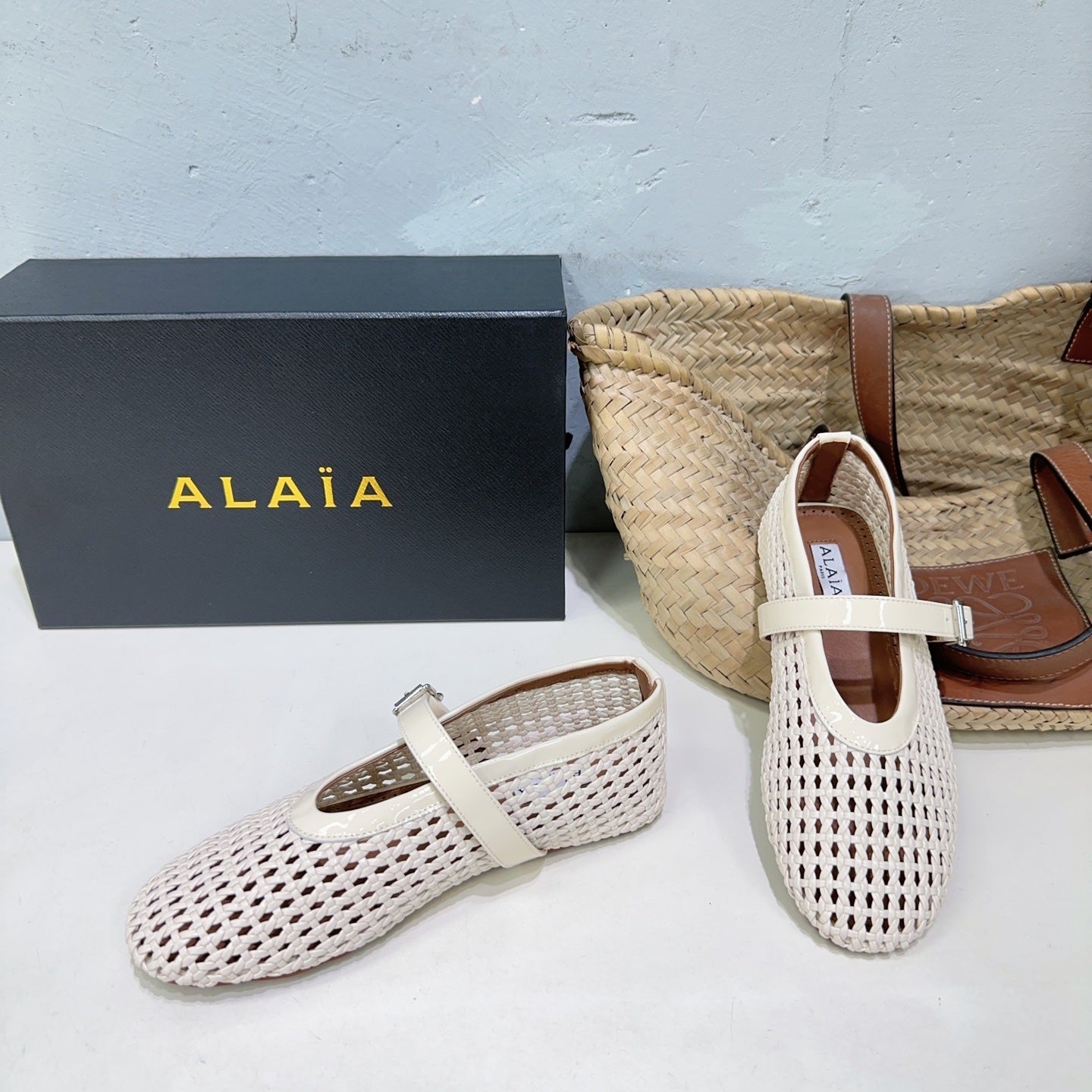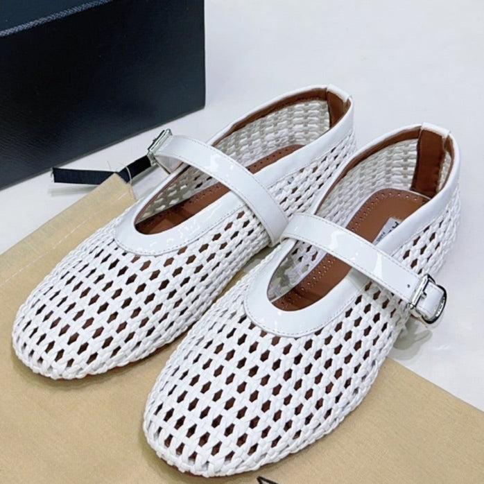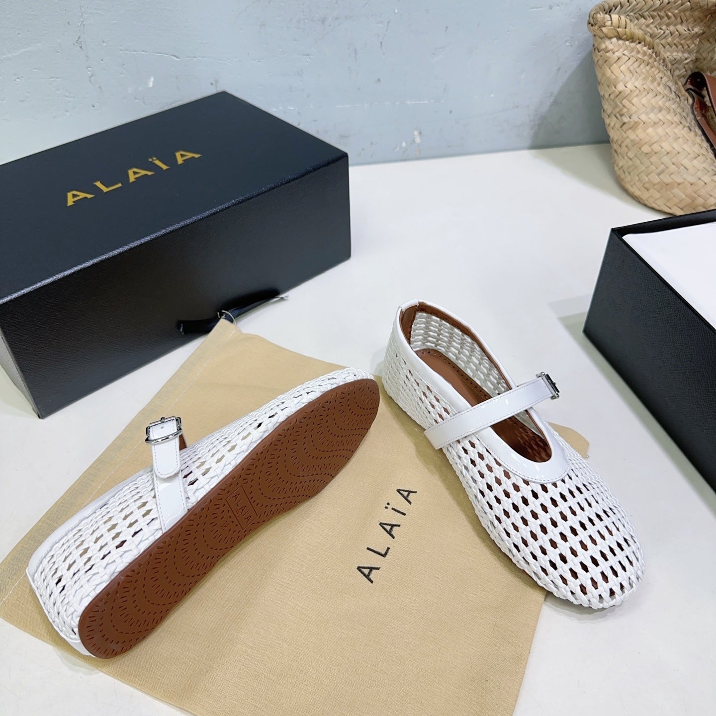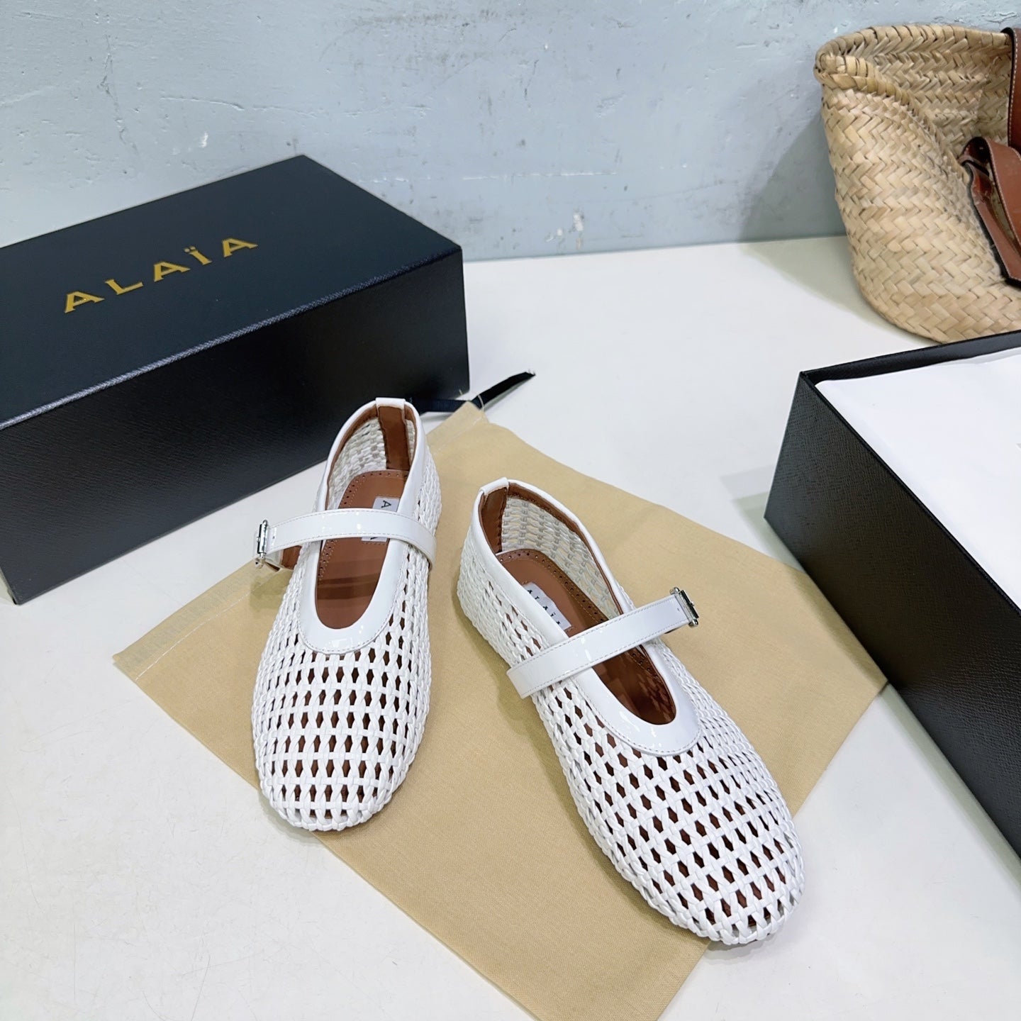 Alaia 25 Laminated Fishnet Ballet Flats White Lambskin 576442