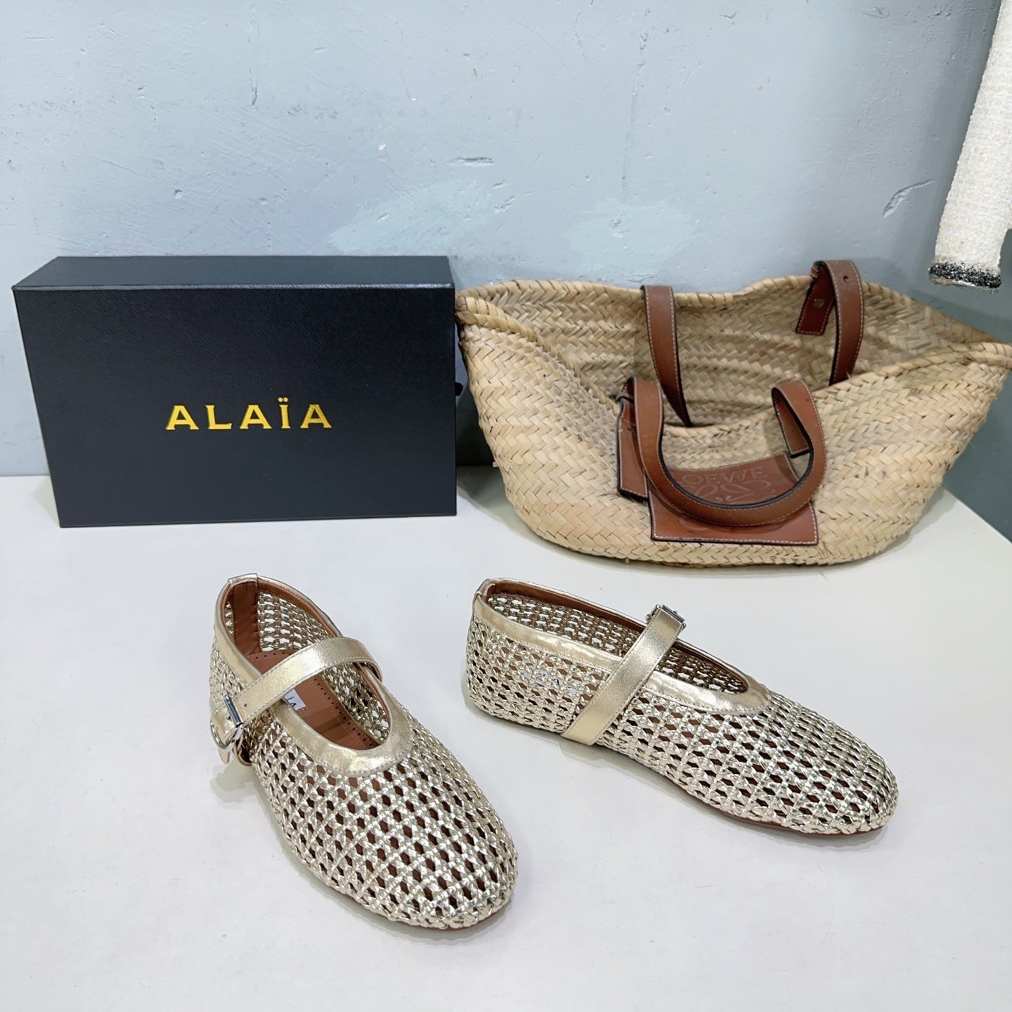Alaia 25 Laminated Fishnet Ballet Flats Gold Lambskin 576441