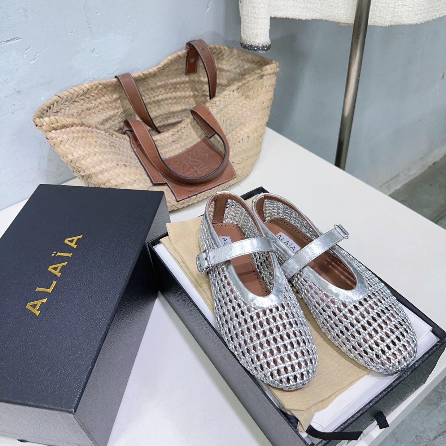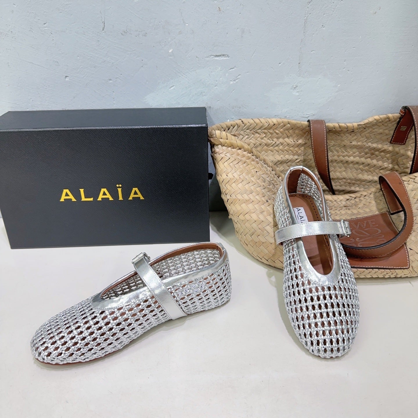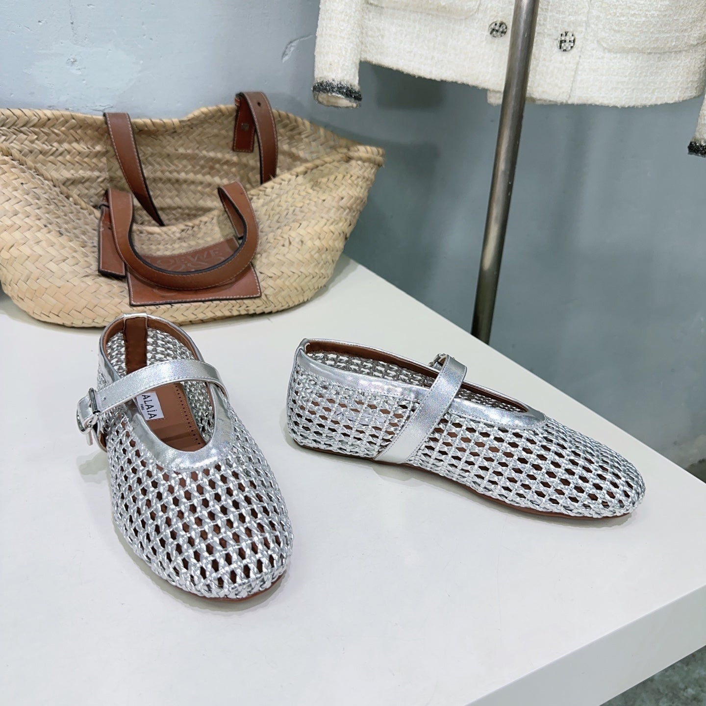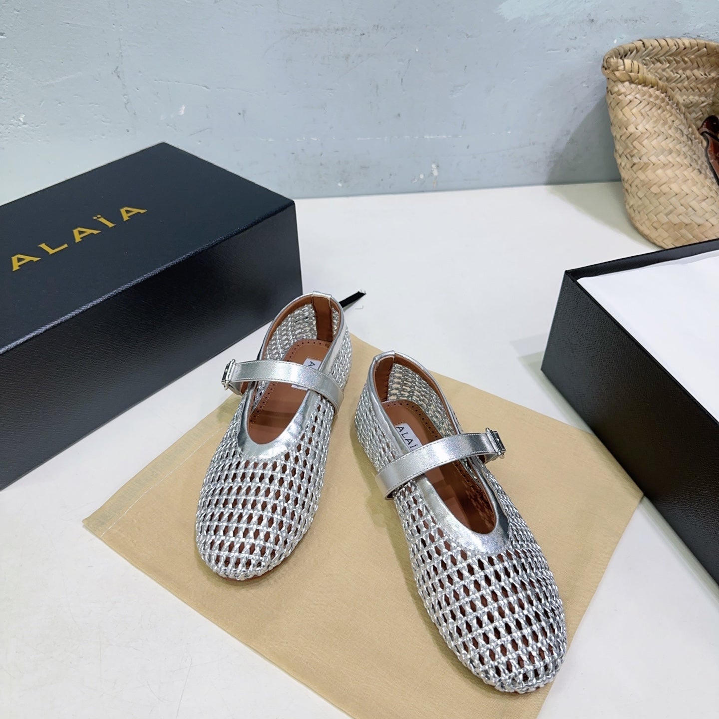 Alaia 25 Laminated Fishnet Ballet Flats Silver Lambskin 677174
