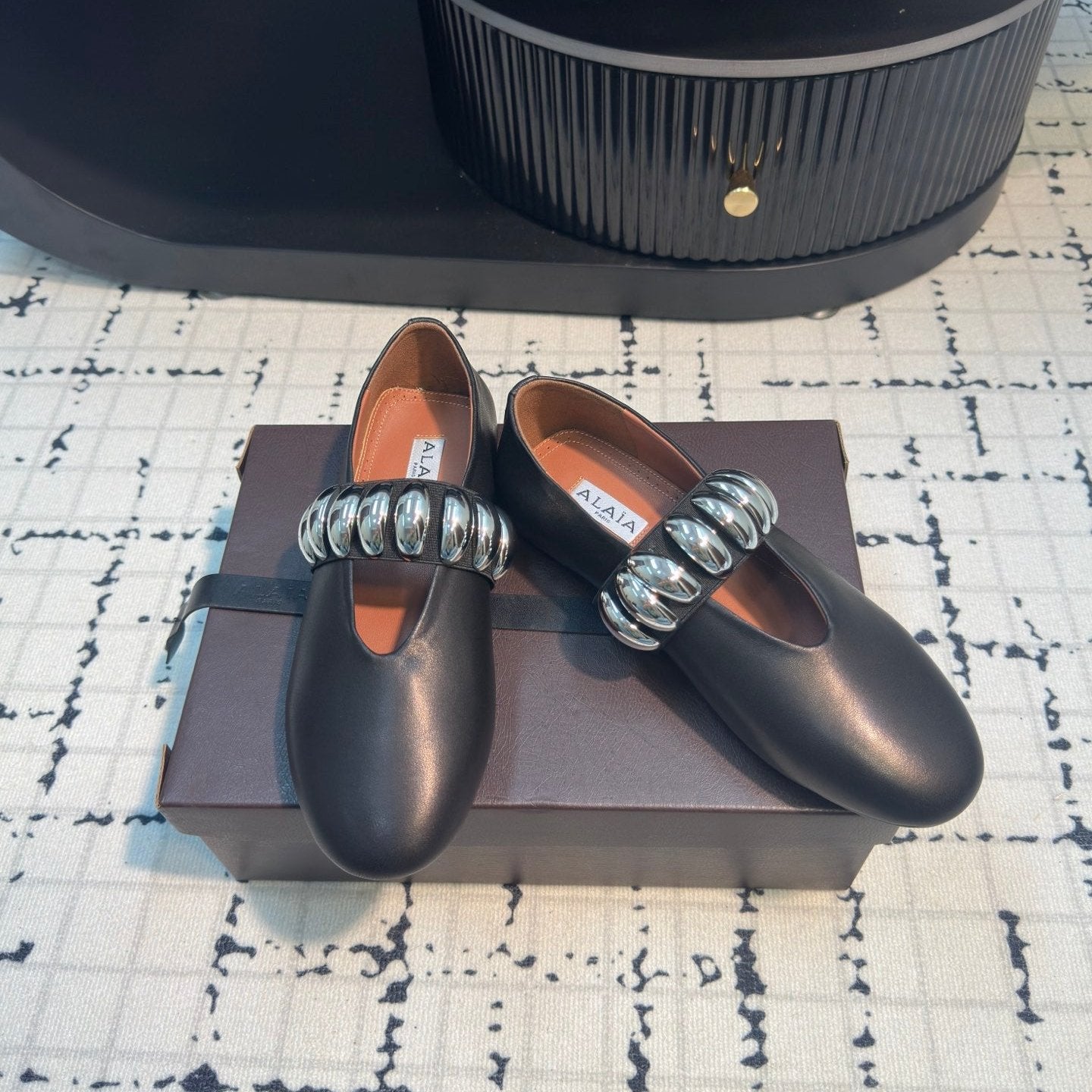Alaia Strass Ballet Flats In Black Calfskin With Fleece Lining 926043