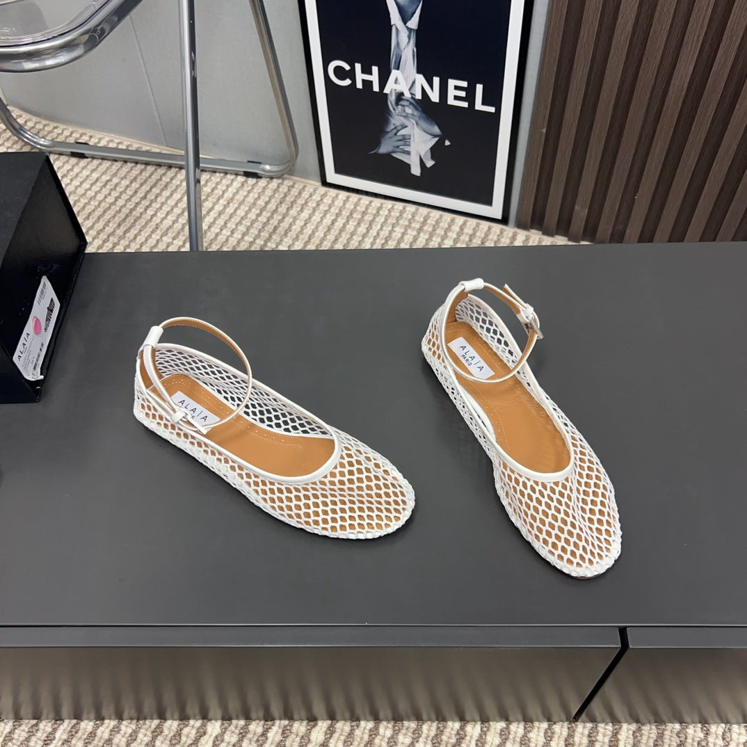 Alaila Ballet Flats With Studs On Fishnet In White 975751