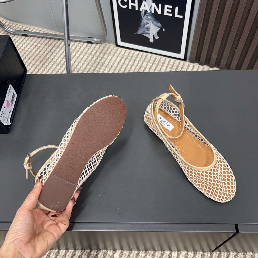 Alaila Criss Cross Ballet Flats In Beige Lambskin 996059