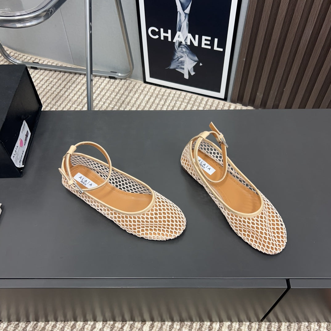 ALAIA SPHERE BALLET FLATS IN ALMOND BEIGE LAMBSKIN