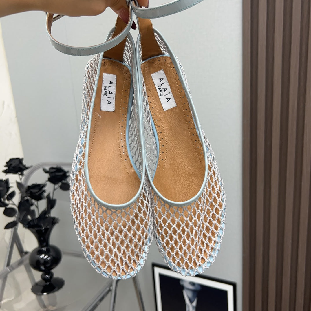 ALAIA SPHERE BALLET FLATS IN LIGHT BLUE LAMBSKIN