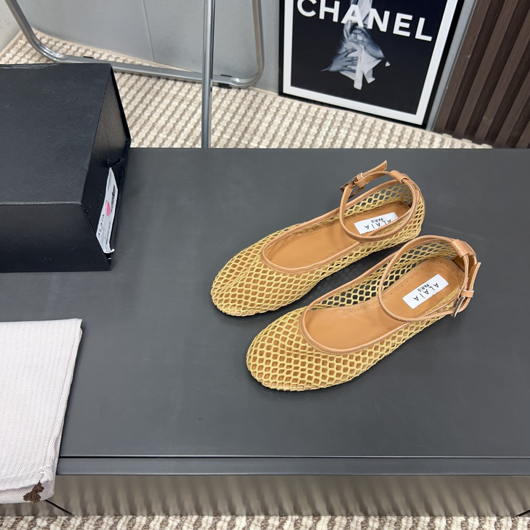 ALAIA SPHERE BALLET FLATS IN GOLDEN LAMBSKIN